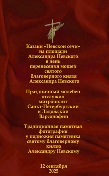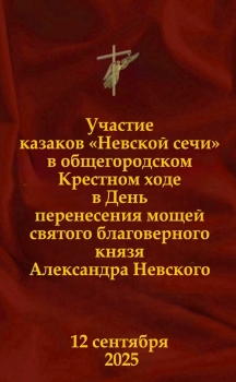 Участие казаков «Невской сечи» в общегородском Крестном ходе в День перенесения мощей святого благоверного князя Александра Невского. 12 сентября 2025