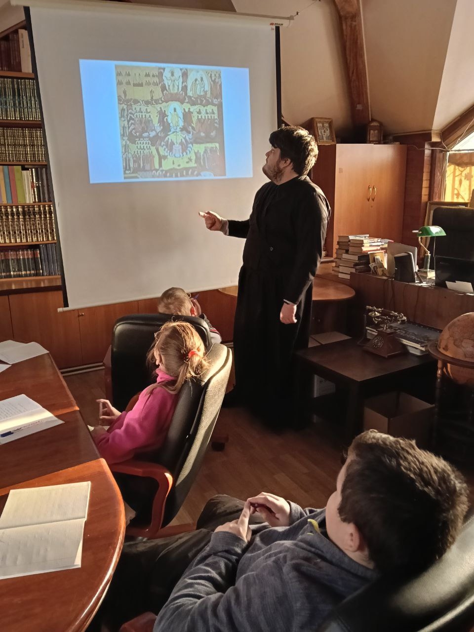 Дети вместе с преподавателем читали её текст, написанный церковнославянскими буквами, разбирали знакомые и новые слова, почувствовали красоту и глубину богослужебного языка.