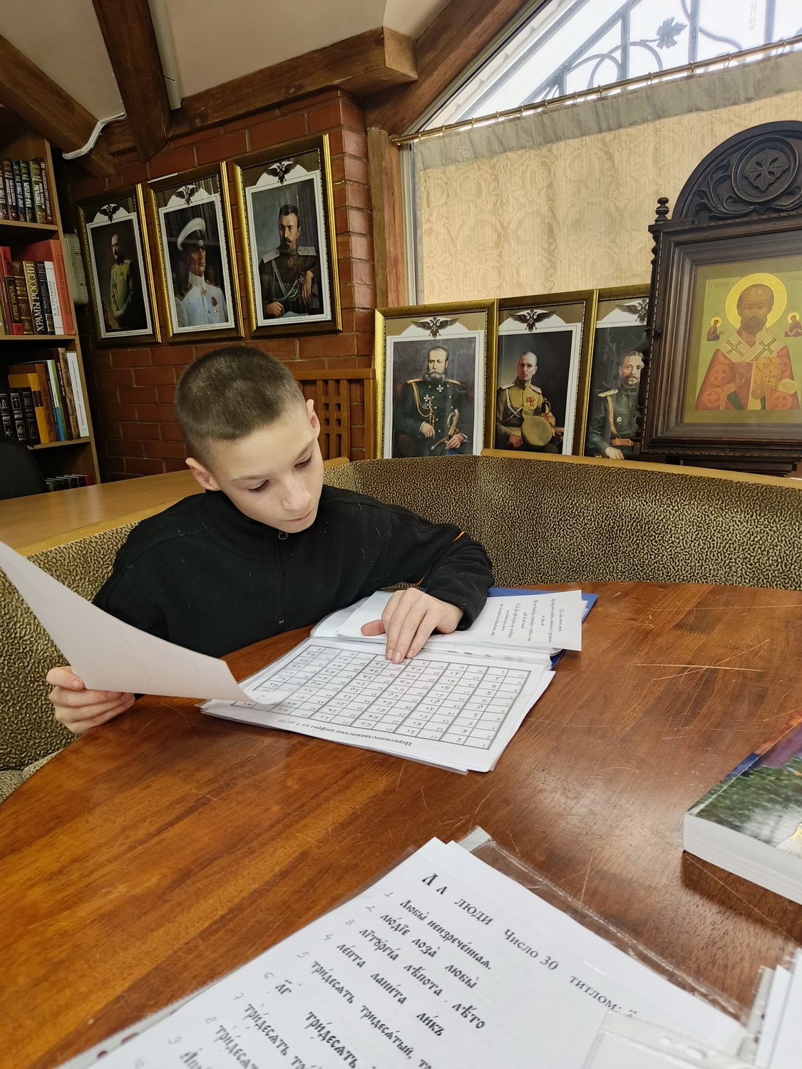На занятии царила атмосфера увлеченного исследования: дети читали слова с новой буквой, а также пробовали свои силы в составлении и расшифровке церковнославянских чисел. Такие уроки помогают не только лучше понимать тексты молитв и Священного Писания, но и развивают внимание и логику.