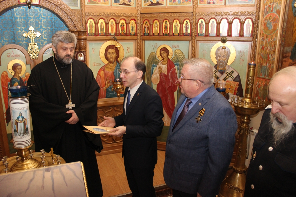 12 декабря 2018г. Награждение настоятеля храма Тихвинской иконы Божией Матери Сестрорецка, духовника Конвоя Памяти Государя Императора Николая II архимандрита Гавриила (Коневиченко) памятной медалью «Юбилей Всенародного Подвига. 1613-2013»