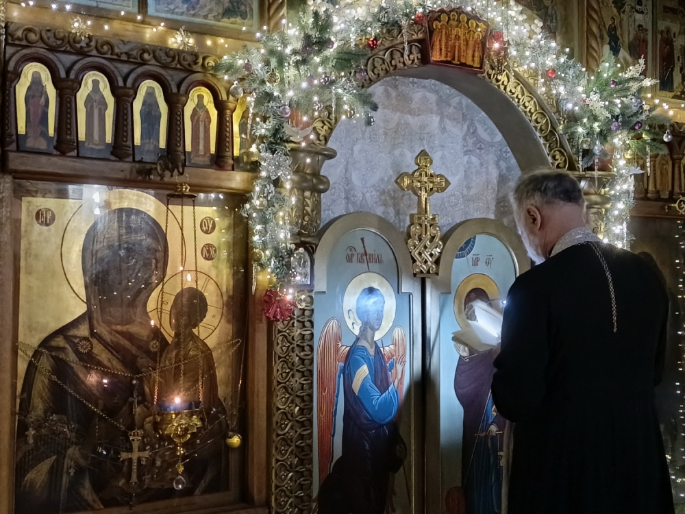 7 января 2026 года. Храм Тихвинской иконы Божией Матери Сестрорецка. Часы. Исповедь. Божественная Литургия свт. Иоанна Златоуста