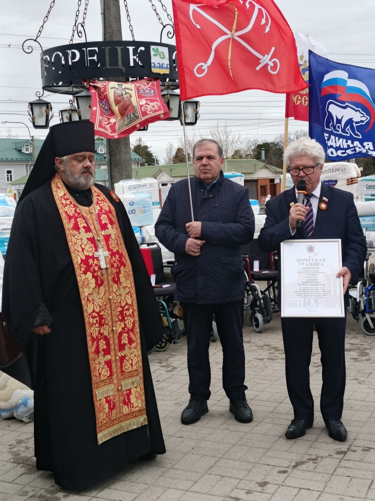 30 апреля 2026 года у храма Тихвинской иконы Божией Матери города Сестрорецка для участников СВО, проходящих лечение в госпиталях Санкт-Петербурга, Белгорода и Горловки, передана гуманитарная помощь