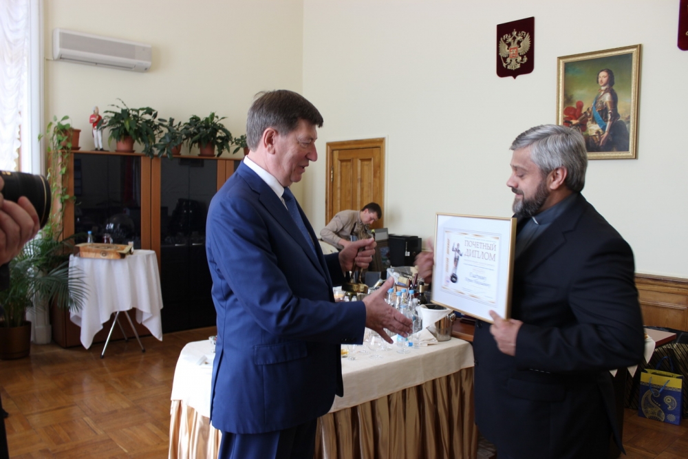 9 сентября 2016 года настоятель храма Тихвинской иконы Божией Матери Сестрорецка архимандрит Гавриил Коневиченко поздравил главу администрации Петроградского района Санкт-Петербурга Юрия Николаевича Гладунова с юбилеем – 60-летием