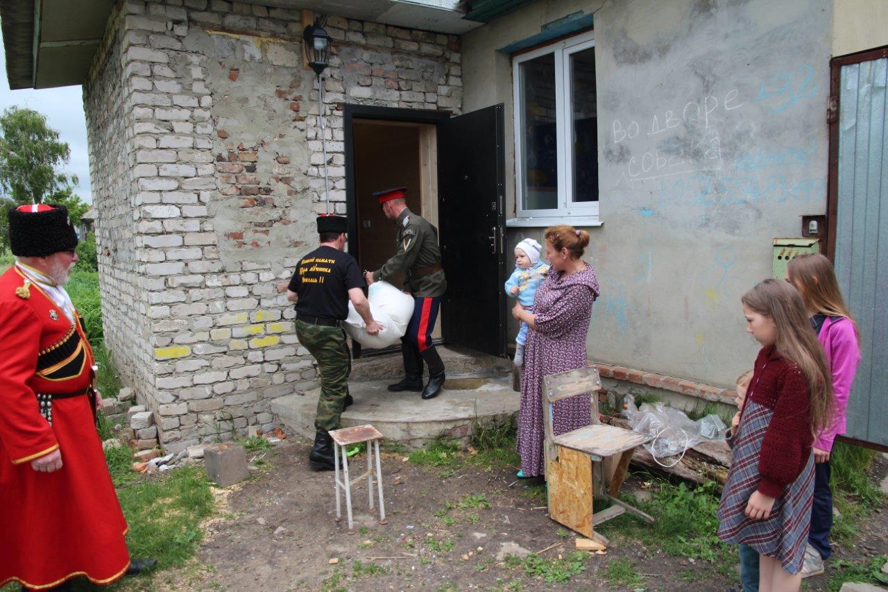 Гуманитарную помощь многодетным семьям привезли казаки-конвойцы в село Каменка-Садовка Новохопёрского района Воронежской области