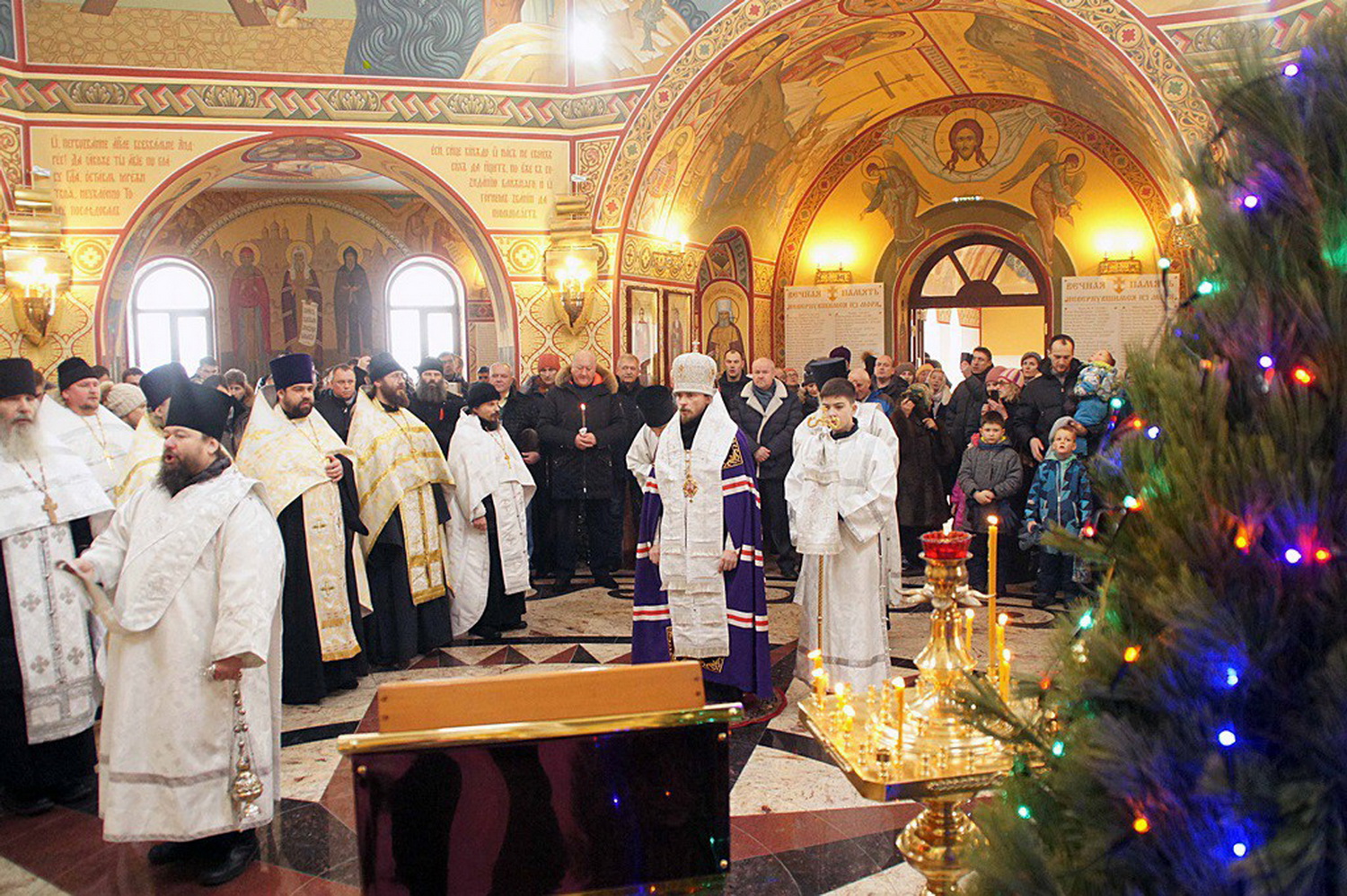 По окончании Крестного хода, на центральной площади у главной городской елки архиепископ Феодор обратился с поздравительными словами к собравшимся:
