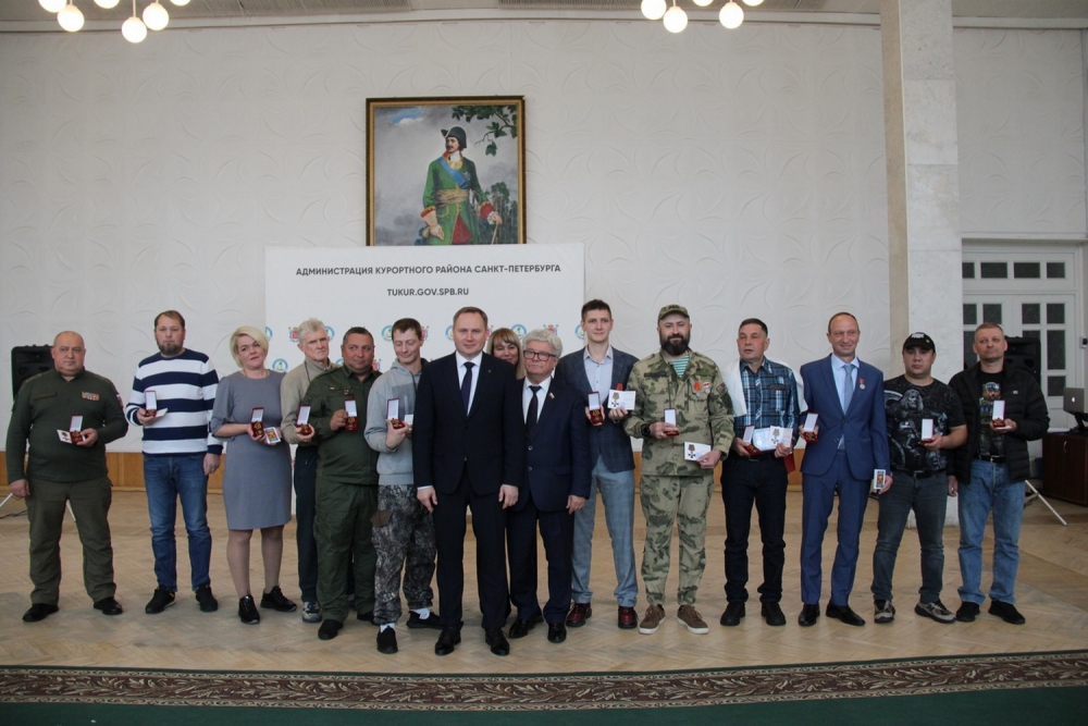 Торжественная церемонии вручения жителям района – героическим воинам СВО – памятных знаков «За участие в специальной военной операции от благодарного Санкт-Петербурга» состоялась 16 октября в Белом зале администрации Курортного района Санкт-Петербурга.