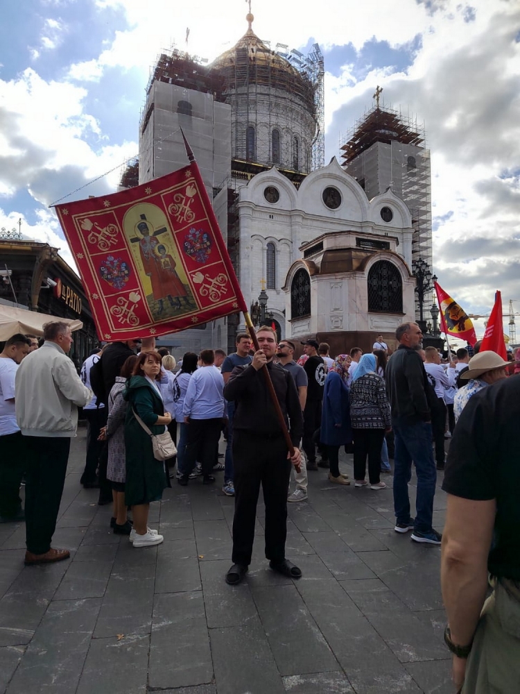 В этом масштабном молитвенном шествии принял участие казак станицы Хопёрской ХПКО СДКВ, конвоец Крестоходного подразделения Хоперского отдела Конвоя Святого Царя Страстотерпца Николая II Михаил Мельников. По согласованию со своим атаманом, вахмистром Хоперского отдела Конвоя Владимиром Лаенко, несмотря на возникшие трудности, Михаил с конвойским штандартом Августейших атаманов прибыл в Столицу нашей Родины и ещё успел дать интервью местному видеоканалу.