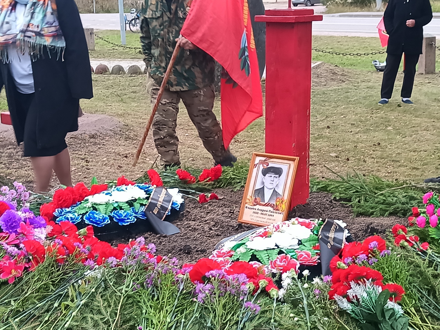 Один из бойцов оставил заполненный солдатский медальон, по которому были найдены родственники. На захоронение приехал внучатый племянник из Красноярска.