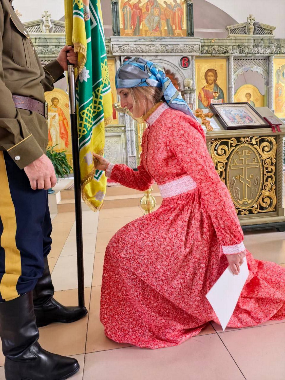 Казаки станицы Удинская Антон Карлович Кобар, Владимир Николаевич Карнаухов, казачка Анна Анатольевна Федосеева, торжественно произнесли на Святом Евангелии клятву верности Вере православной, Отечеству и казачеству.