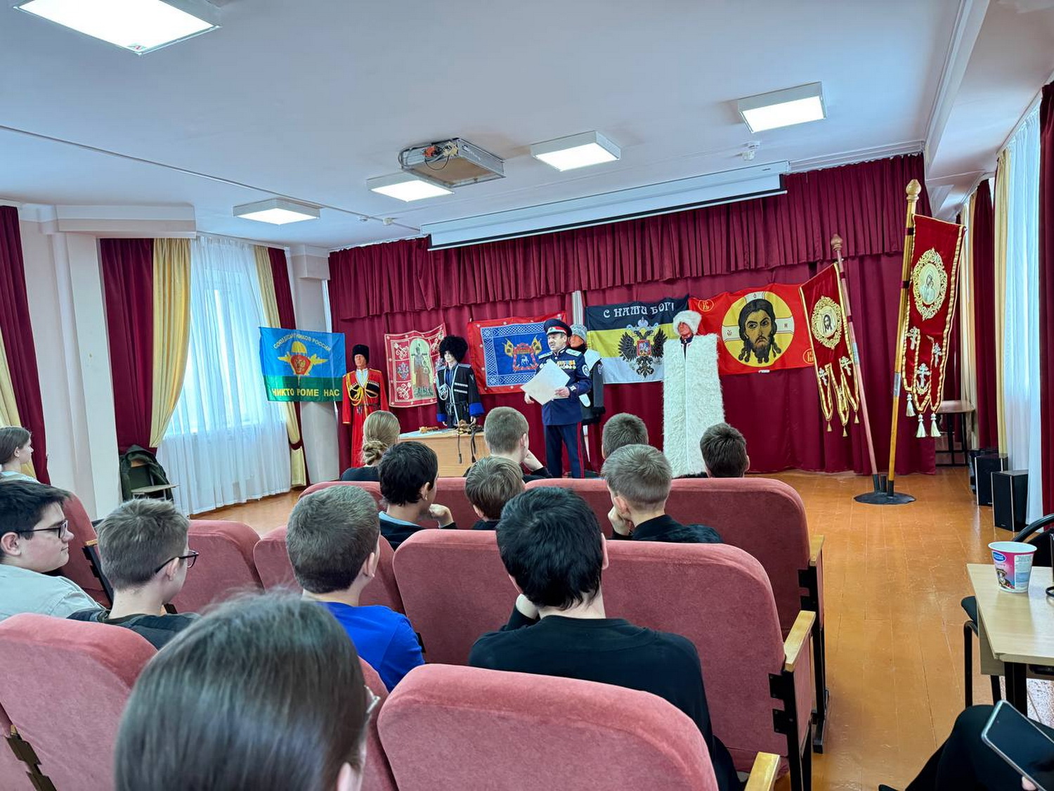 Урок истории казачества провел наказной атаман Белгородского отдела Конвоя Памяти Государя Императора Николая II, Белгородского округа МКЦ и СКВРКЗ казачий генерал-майор Сердюков Александр Михайлович.