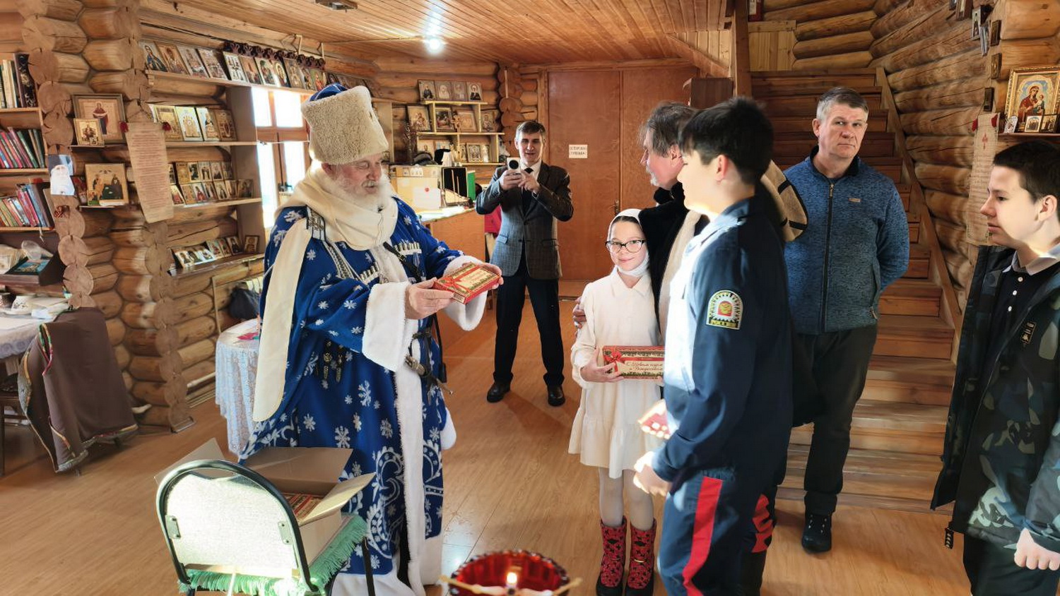 Свое путешествие Камчатский казачий дед Мороз, наказной атаман Камчатского отдела Конвоя Памяти Государя Императора Николая II Федор Савченко начал в Эссо, где в местном храме «Церковь Спаса Нерукотворного Образа» с настоятелем протоиереем Владиславом Ревенком, директором Быстринской средней школы Алексеем Куценко и окружным атаманом Виктором Махиней провели молебен, поздравили казачьих кадетов с наступающим Новым годом и Рождеством Христовым.