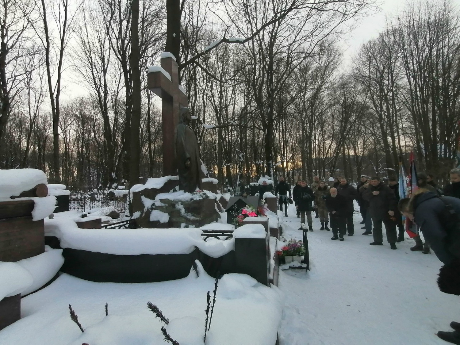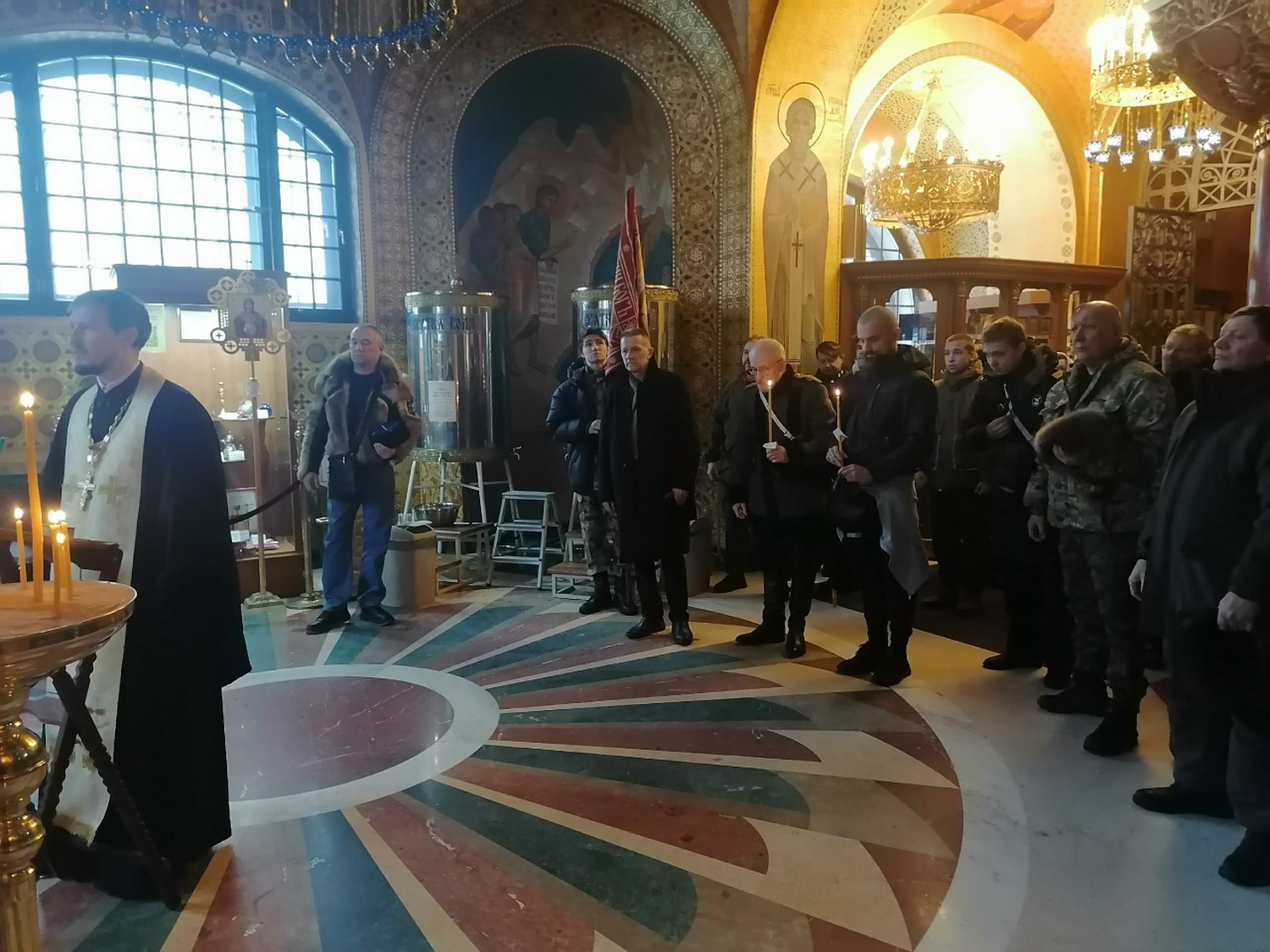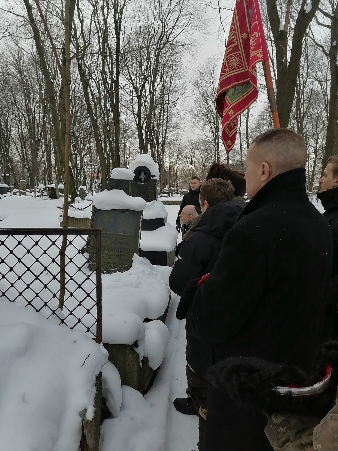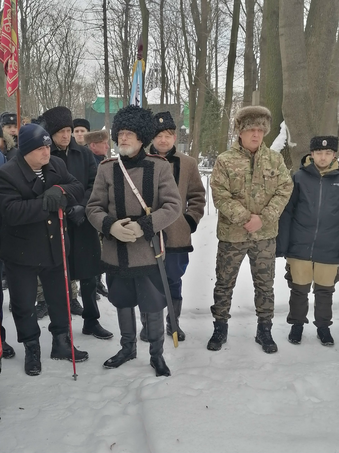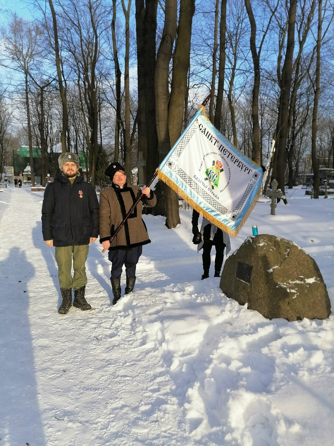 В панихиде принял участие вахмистр Конвоя Памяти Государя Императора Николая II Илья Иосифович Пивник со штандартом Конвоя.