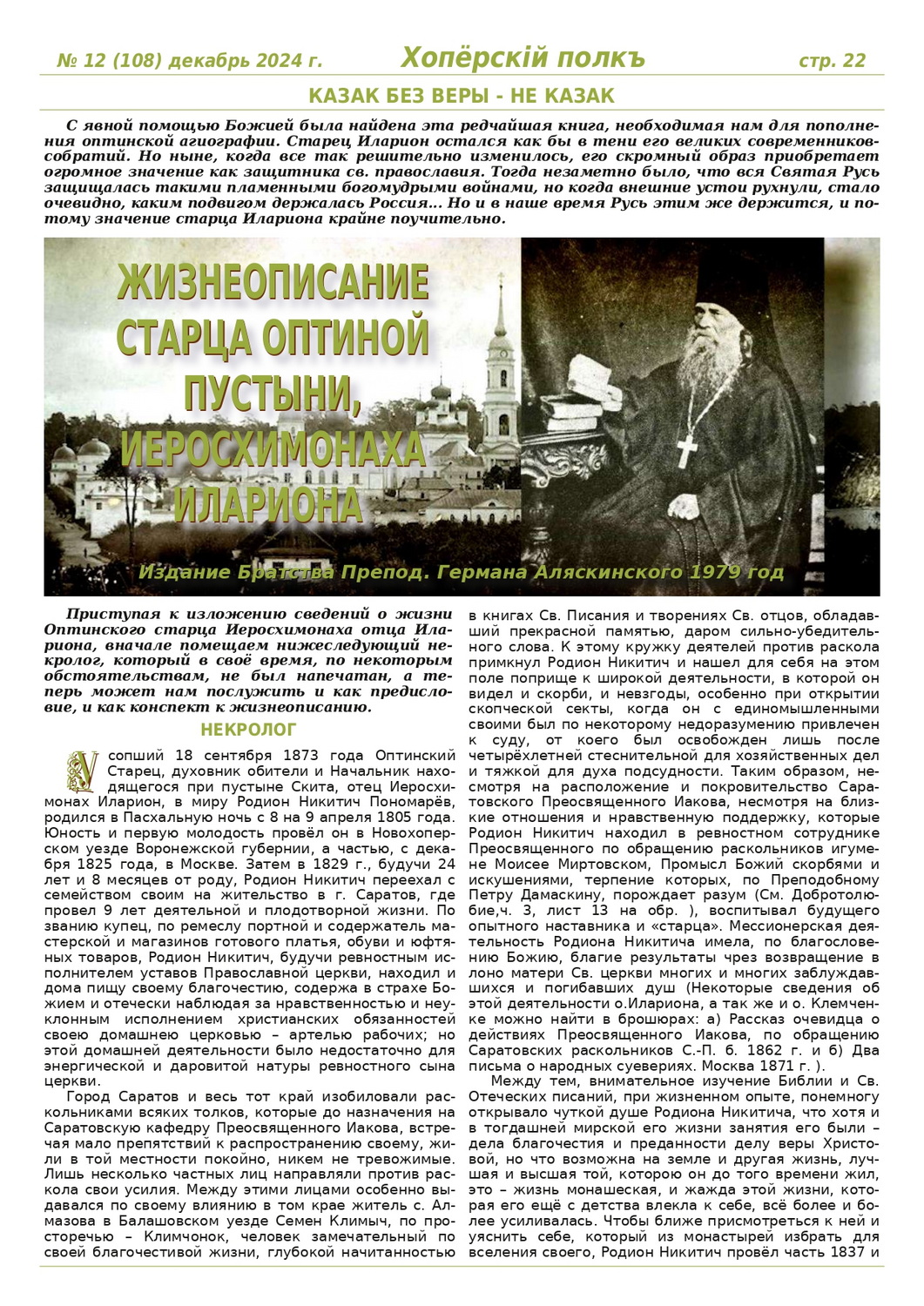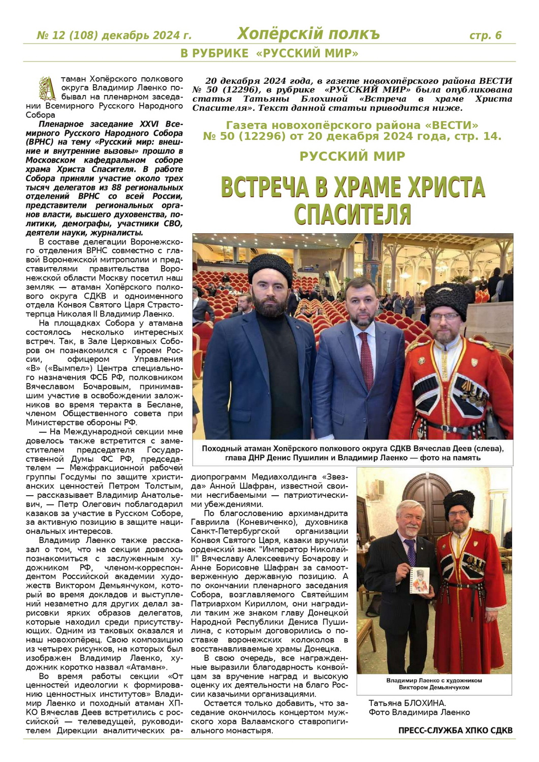 Журнал «Хоперскiй полкъ» выпуск №12 (108) декабрь 2024 года