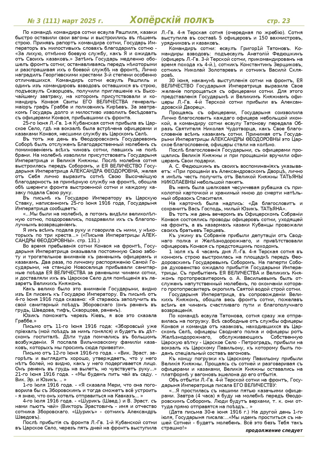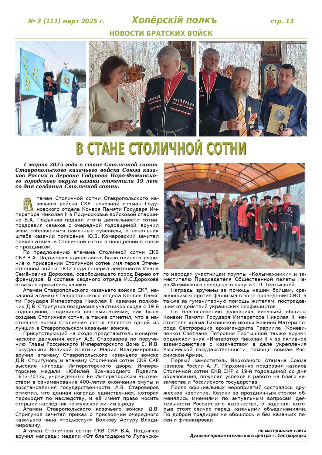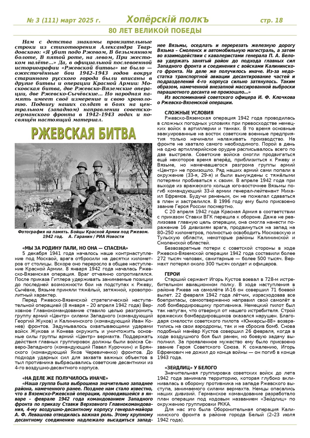 Журнал «Хоперскiй полкъ» выпуск №3 (111) март 2025 года