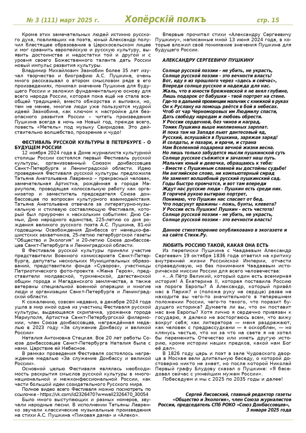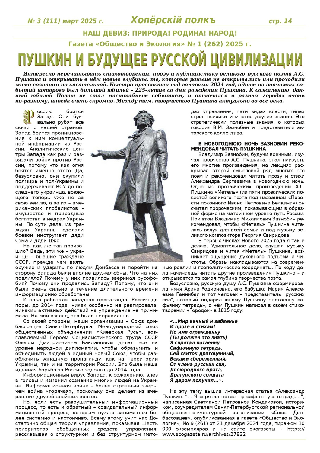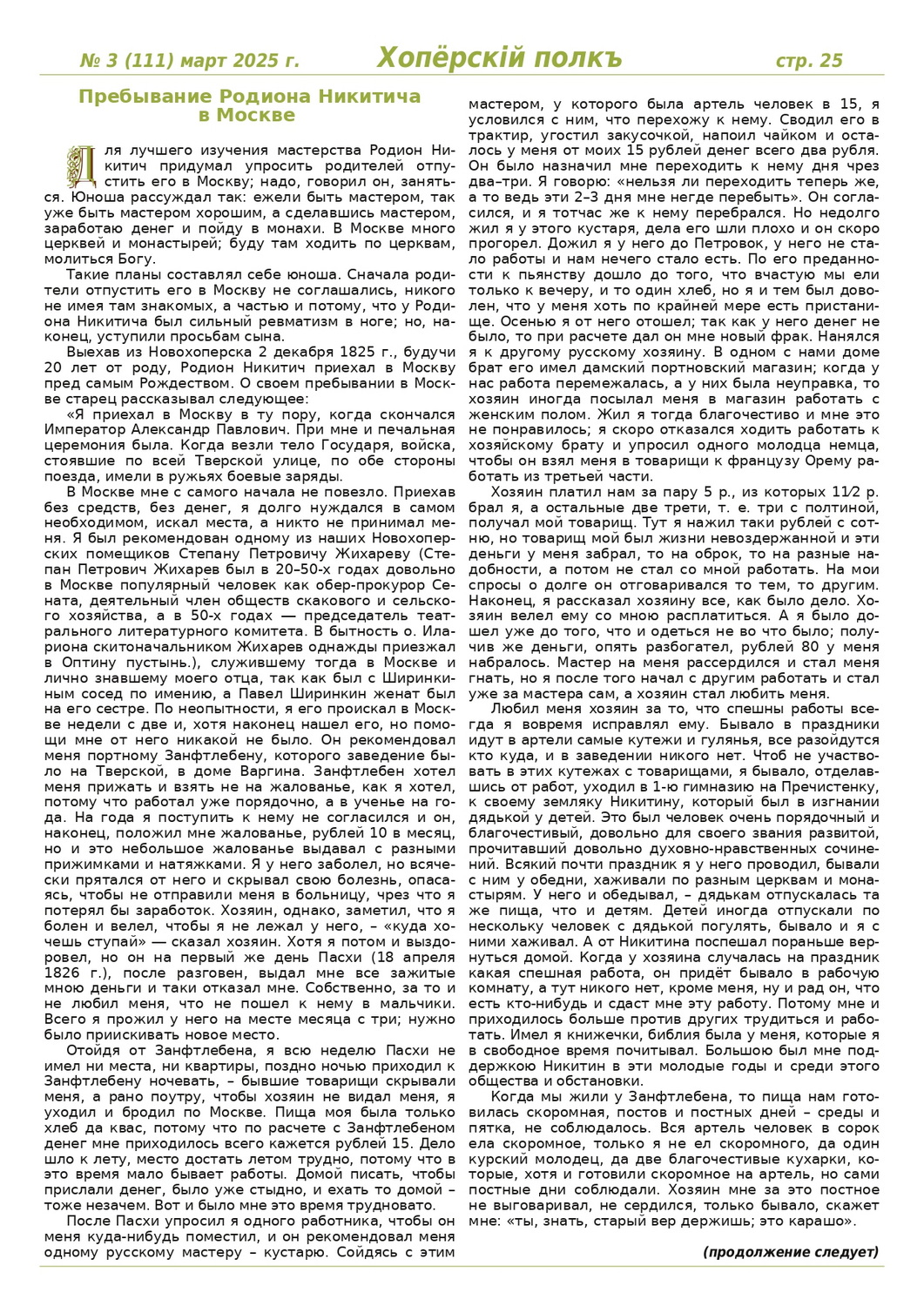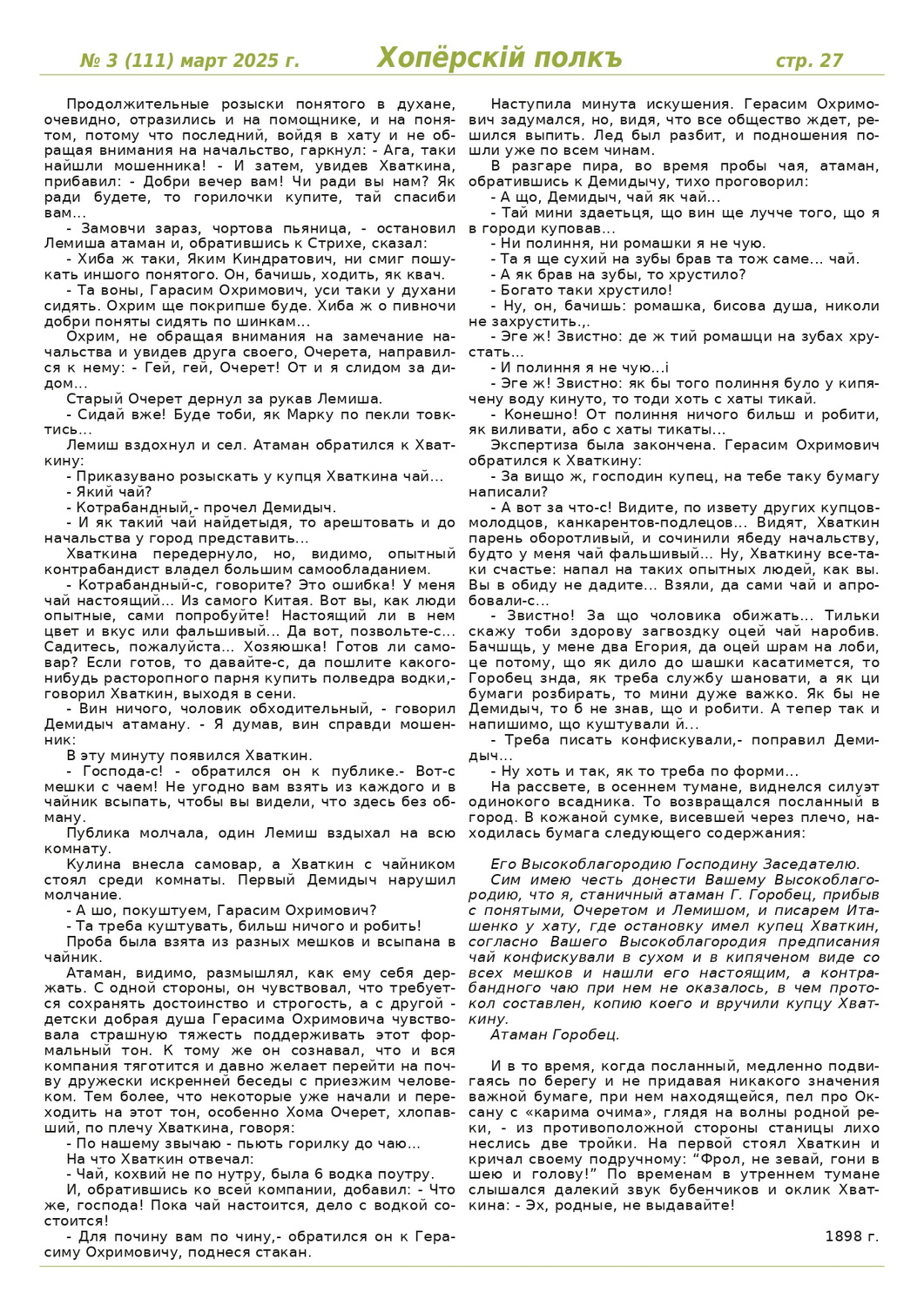 Журнал «Хоперскiй полкъ» выпуск №3 (111) март 2025 года