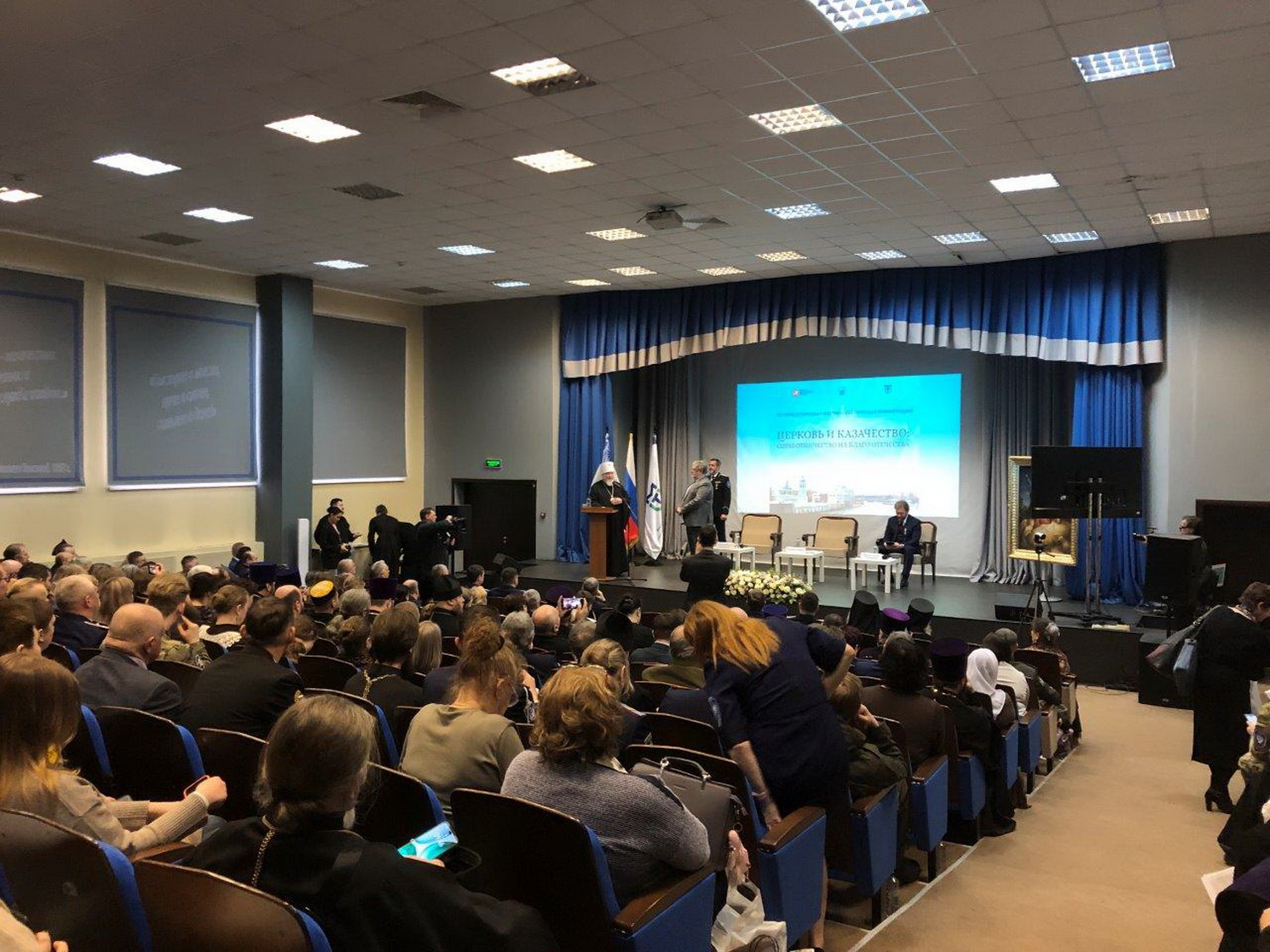 Мероприятие проводилось в Московском государственном университете технологий и управления имени К.Г. Разумовского (Первом казачьем университете) и началось с пленарного заседания и приветственного слова председателя Синодального комитета по взаимодействию с казачеством, митрополита Ставропольского и Невинномысского Кирилла.