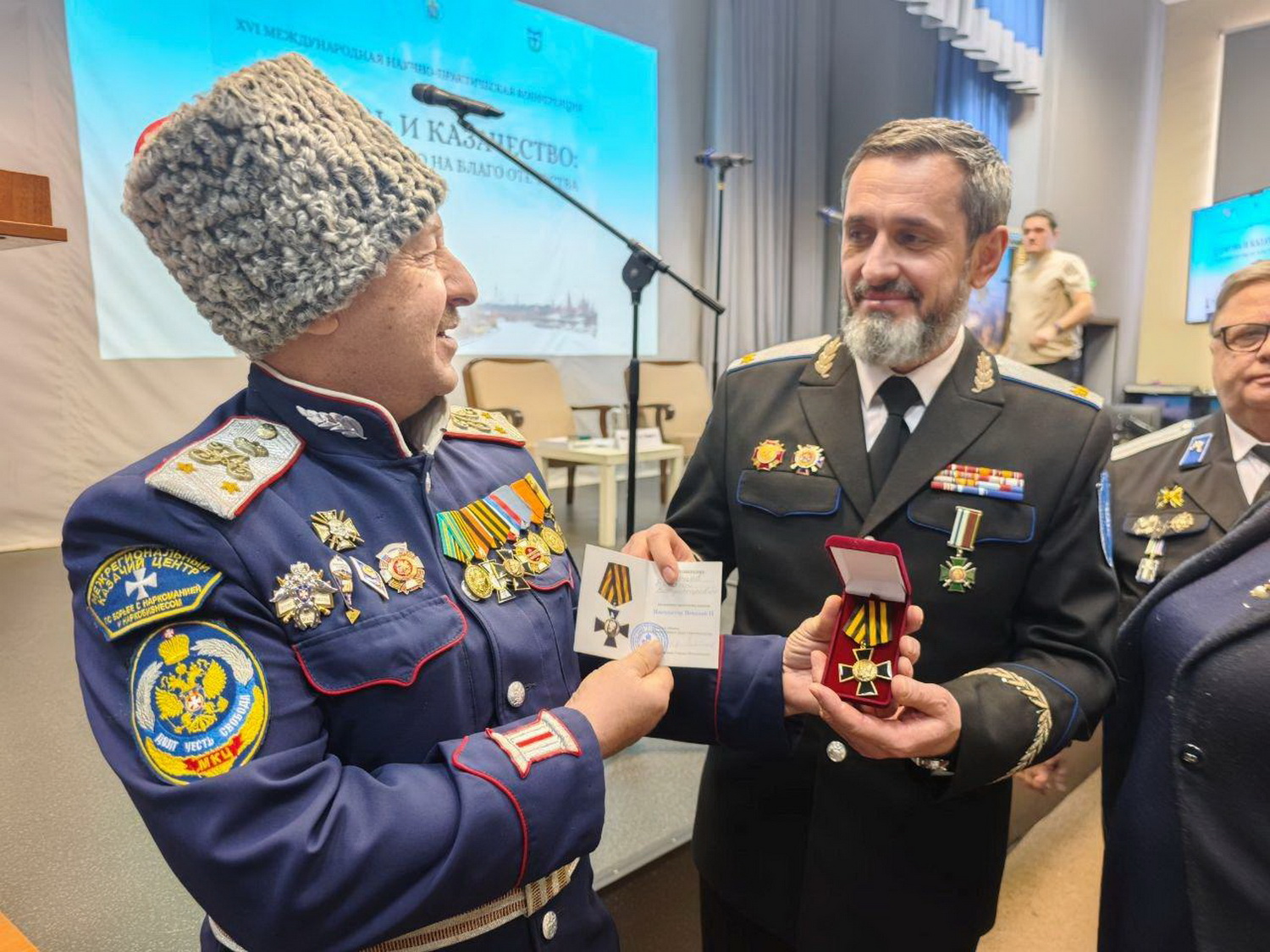 По завершении пленарного заседания атаманы Лаенко В. А., Сердюков А. М. и Савченко Ф. О. встретились с атаманом Всероссийского казачьего общества казачьим генералом Виталием Кузнецовым. Владимир Анатольевич поздравил генерала с полученной от митрополита Кирилла высокой наградой Синодального отдела по взаимодействию с Вооружёнными Силами и правоохранительными органами — орденом Архангела Михаила II степени. В свою очередь Александр Михайлович Сердюков по благословению духовника Конвоя, настоятеля Сестрорецкого храма Тихвинской иконы Божией Матери архимандрита Гавриила (Коневиченко) наградил Виталия Владимировича Кузнецова орденским знаком «Император Николай II» за державно-патриотическую позицию и труды во благо Отечества.