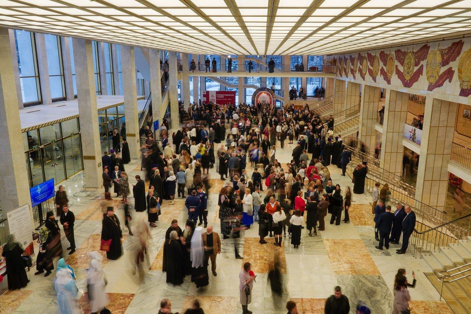 В зале дворца собралось 5,5 тысяч человек: Преосвященные архипастыри — члены Священного Синода и Высшего Церковного Совета, главы экзархатов, митрополий и епархиальные архиереи Русской Православной Церкви, представители Поместных Православных Церквей, члены Межрелигиозного совета России, полномочные представители Президента Российской Федерации в федеральных округах, представители обеих палат российского парламента, руководители и представители федеральных и региональных органов власти, ректоры и представители свыше 250 российских и зарубежных вузов, директора и педагоги общеобразовательных организаций, священнослужители, приходские специалисты, деятели науки и культуры.