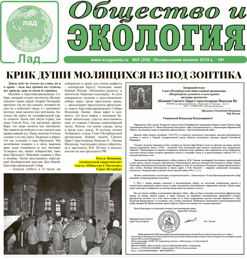 Независимая газета "Общество и Экология" №5 (205), 2019
