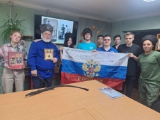 19 сентября в Верейском историко-краеведческом музее начальник штаба Годуновского отдела Конвоя Памяти Государя Императора Николая II в Подмосковье и Столичной сотни Ставропольского казачьего войска, Заслуженный работник культуры Московской области Ю.В. Комаровский встретился с учениками Верейской средней школы