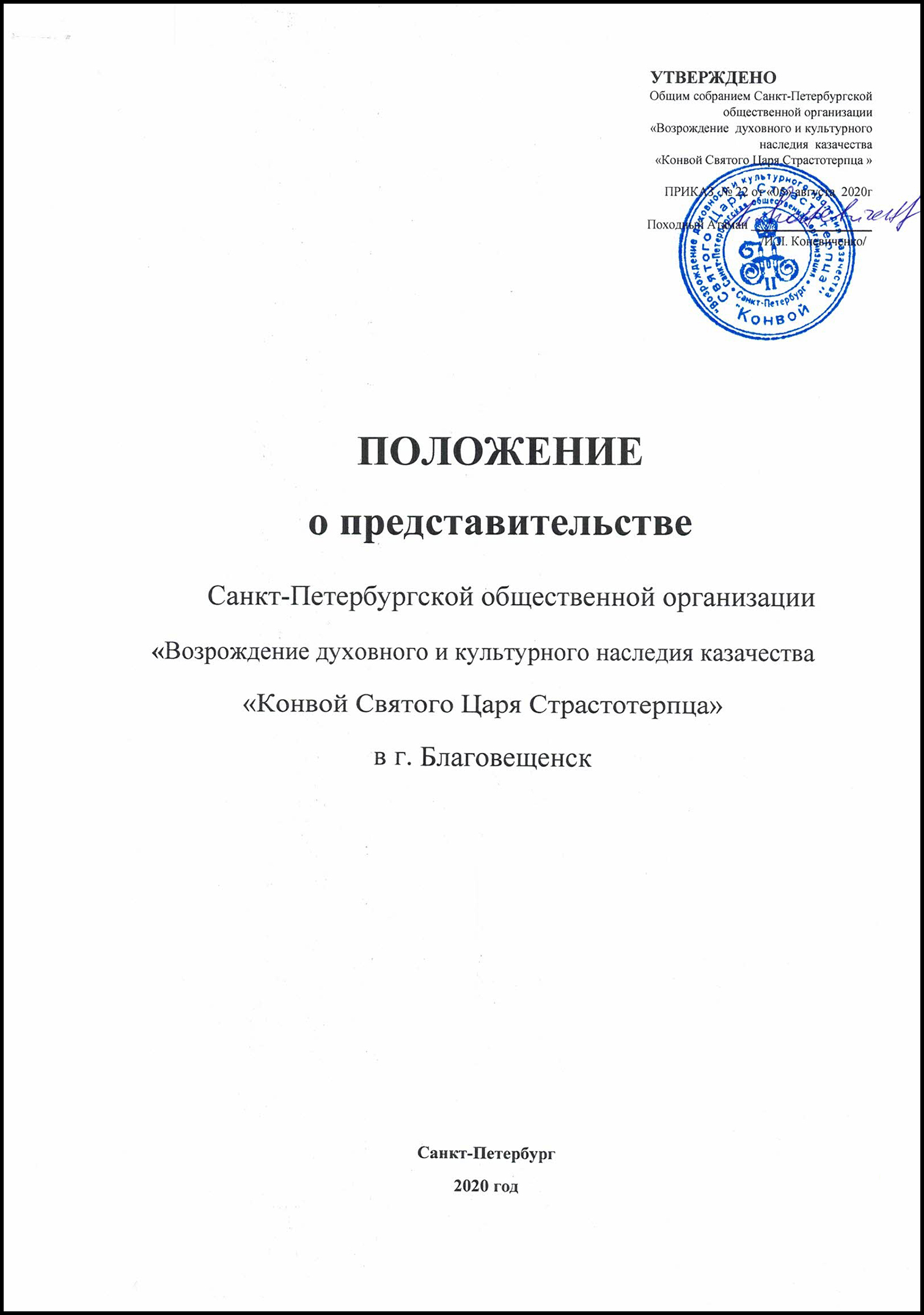 В целях возрождения духовного и культурного наследия державного казачества на Сходе единогласно решили создать Благовещенский отдел, как структурное подразделение Санкт-Петербургской общественной организации «Возрождение духовного и культурного наследия казачества „Конвой Святого Царя Страстотерпца Николая II“ в городе Благовещенск Амурской области.