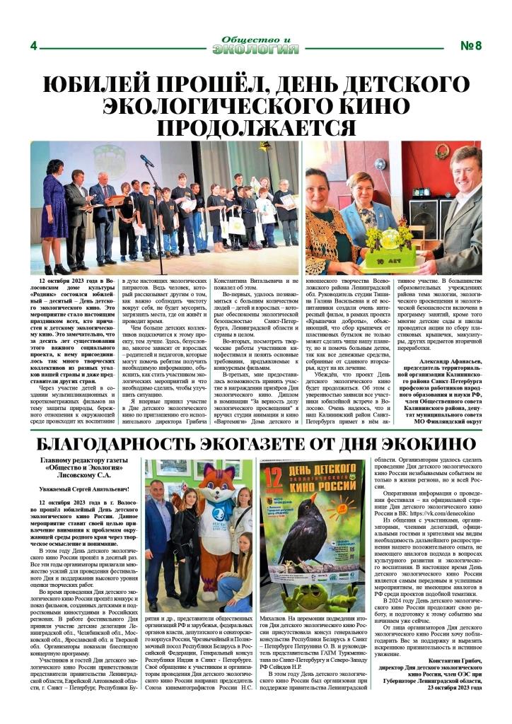 Газета Общество и Экология № 8 (250) октябрь 2023 года