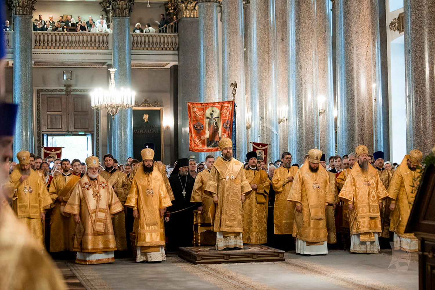 После богослужения состоялся традиционный крестный ход от Казанского собора до площади Александра Невского, в котором приняло участие духовенство Санкт-Петербургской митрополии.