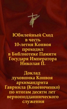 Юбилейный Сход в честь 10-летия Конвоя проходил в Библиотеке Памяти Государя Императора Николая II. Доклад духовника Конвоя архимандрита Гавриила (Коневиченко) по итогам десяти лет верноподданнического служения