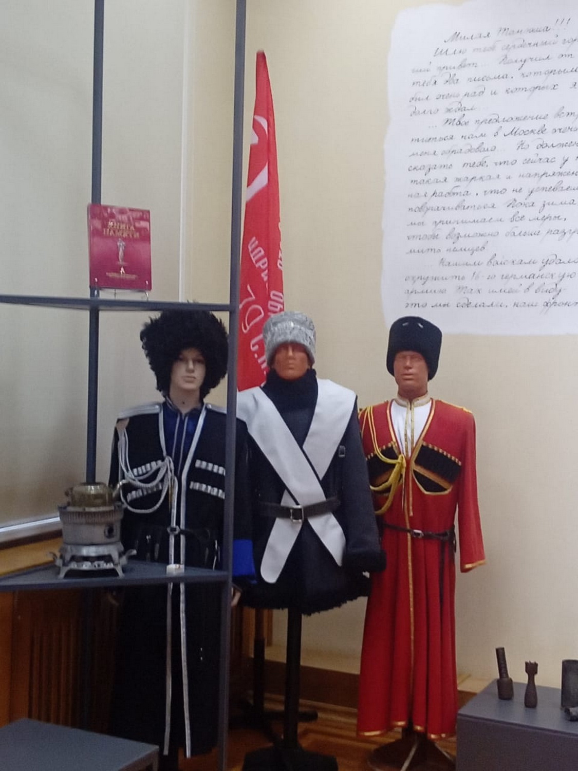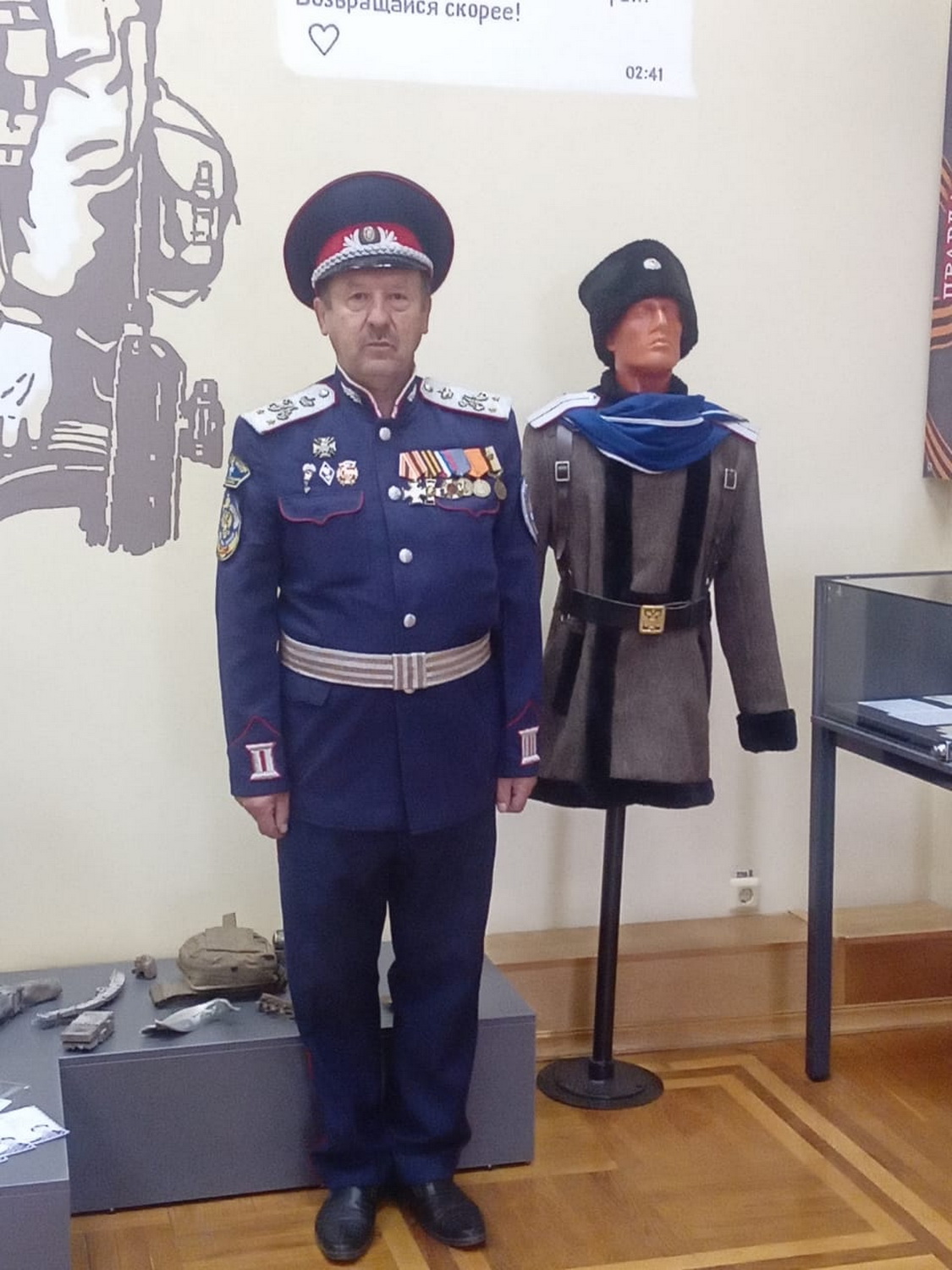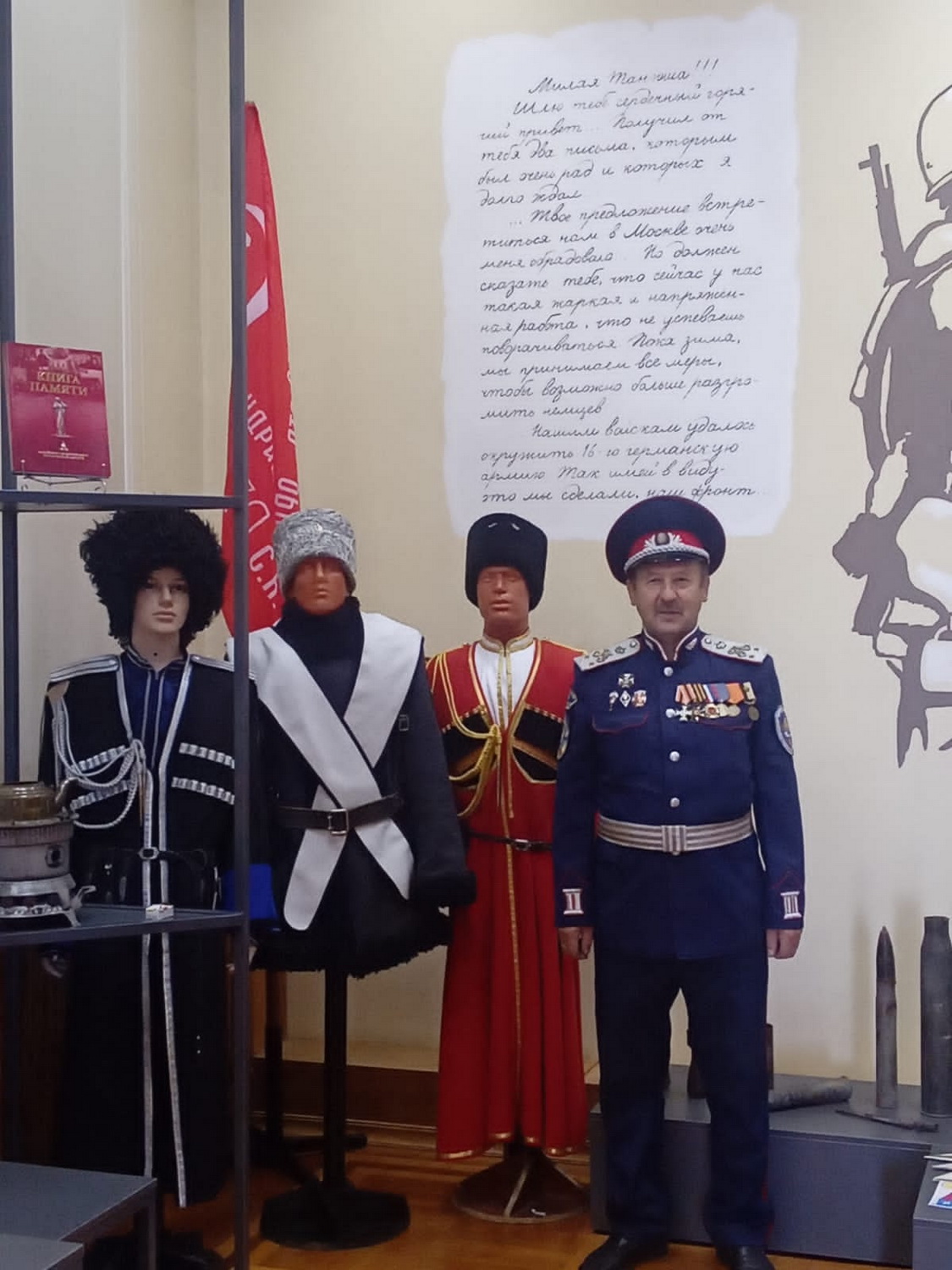Также Юрий Николаевич выразил Благодарность наказному атаману Белгородского отдела Конвоя Памяти Государя Императора Николая II, атаману Белгородского Округа МКЦ и СКВРКЗ, казачьему генерал-майору Александру Сердюкову за предоставление казачьей атрибутики и штандартов, манекенов в казачьей справе, которые атаман разместил в Валуйском Историко- художественном музее для обозрения жителей и гостей по рекомендации главы Городского поселения города Валуйки Алексея Дыбова.