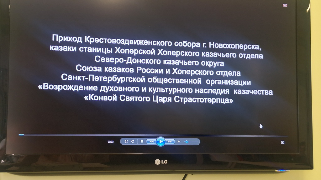 Собравшиеся посмотрели фильм об истории Крестовоздвиженского собора города Новохоперска, который считается казачьим храмом в Борисоглебской епархии.