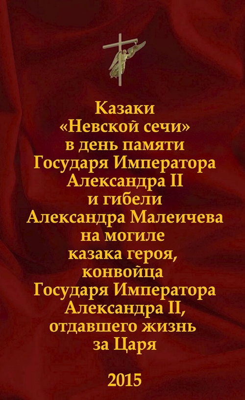 Казаки «Невской сечи» в день памяти Государя Императора Александра II и гибели Александра Малеичева на могиле казака героя, конвойца Государя Императора Александра II, отдавшего жизнь за Царя. 2015