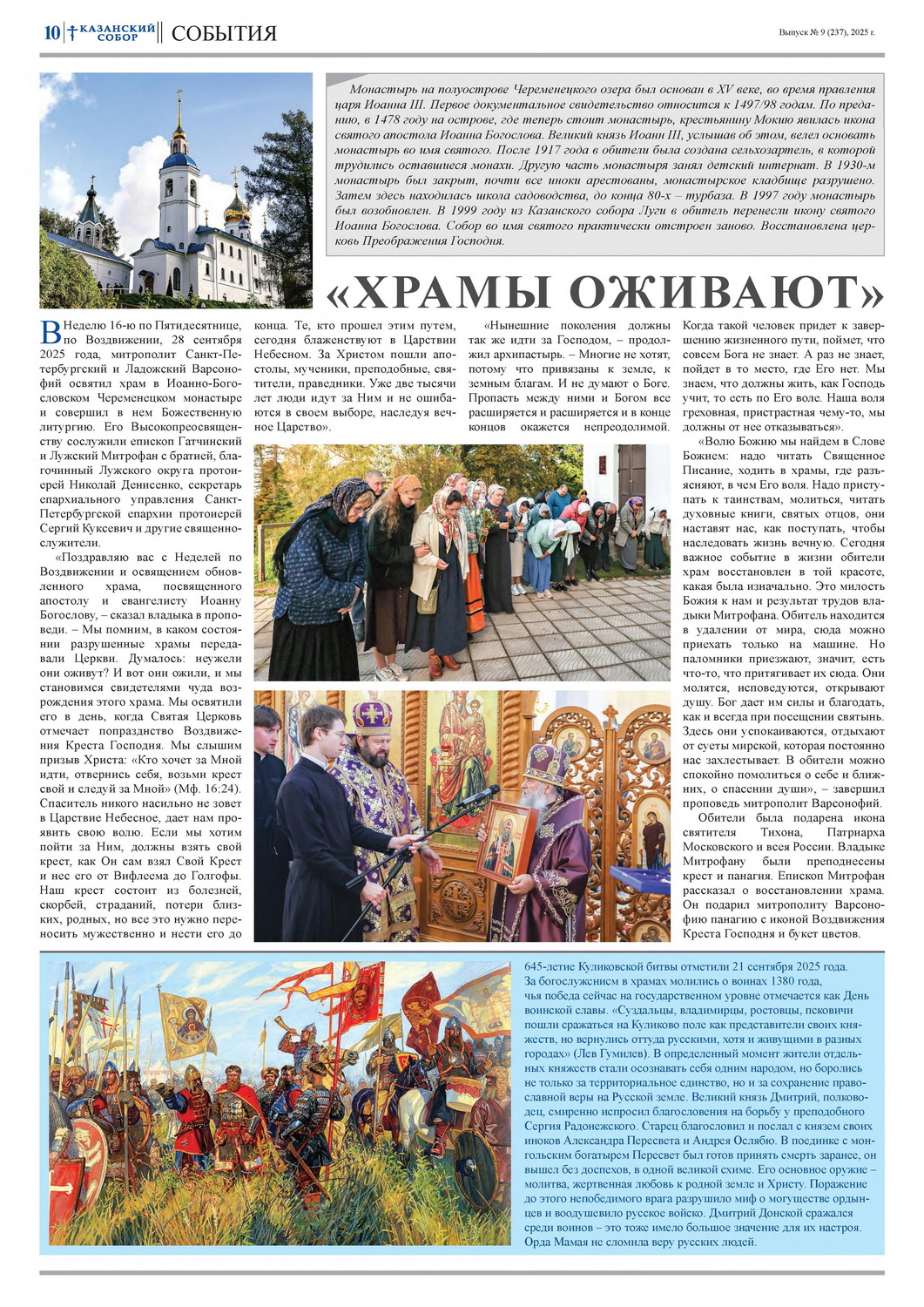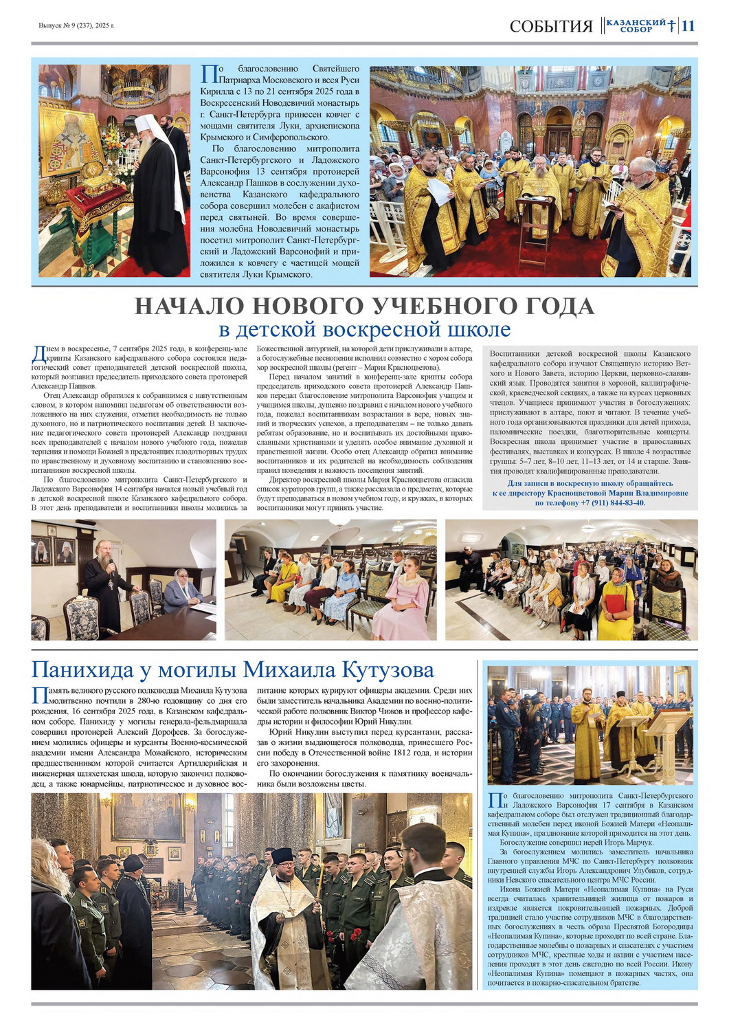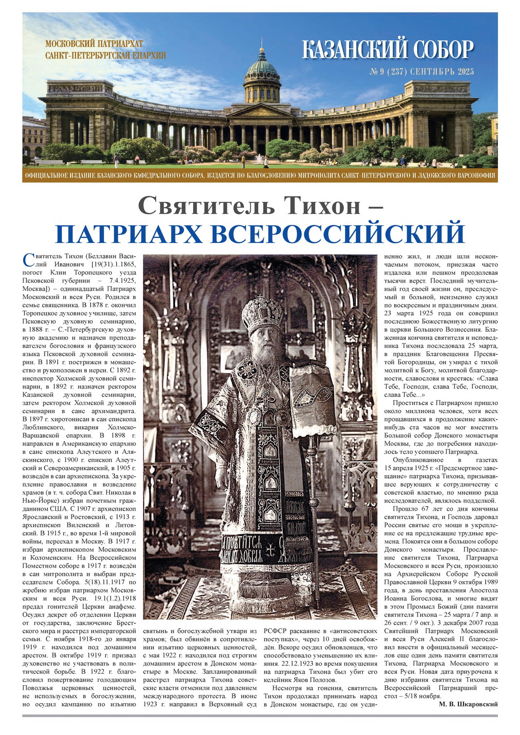Газета "Казанский Собор" № 9 (237) сентябрь 2025 года
