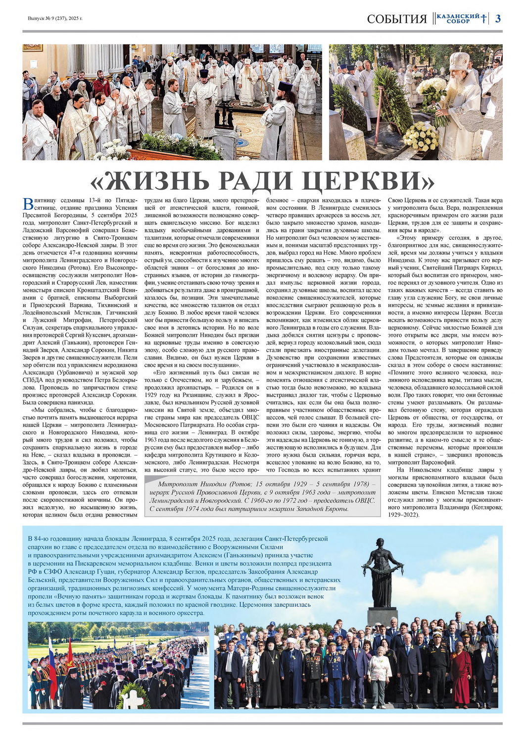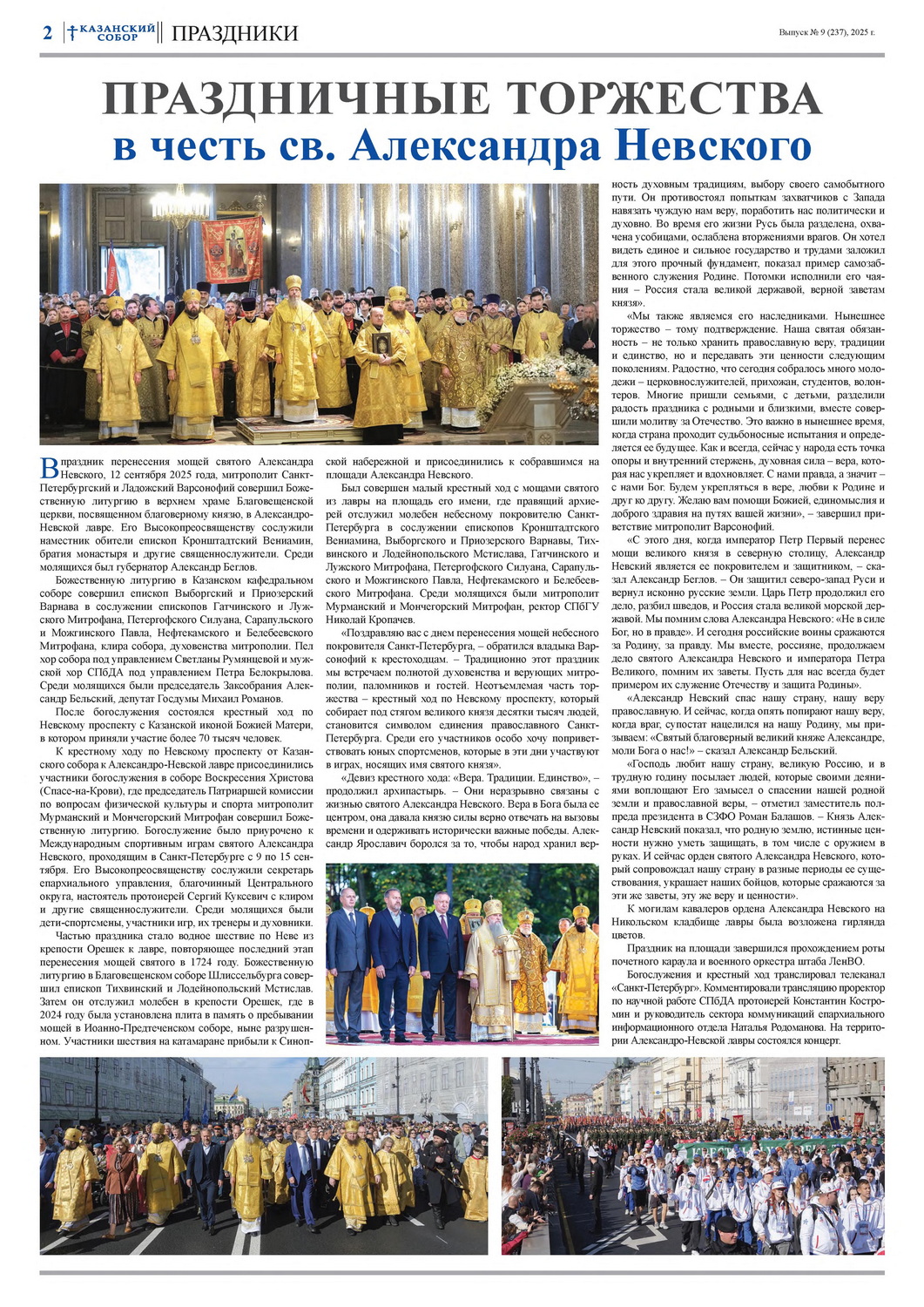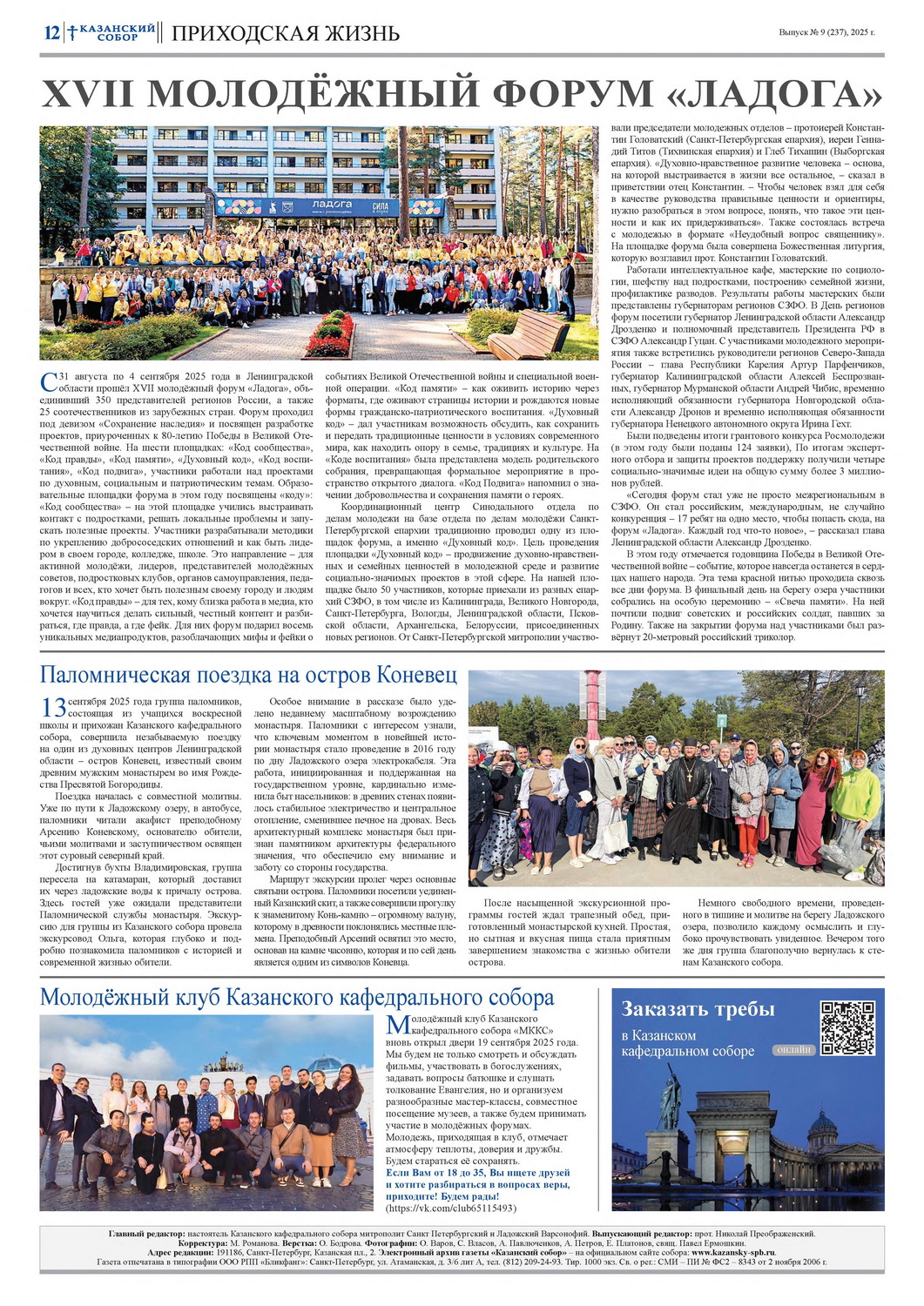 Газета "Казанский Собор" № 9 (237) сентябрь 2025 года