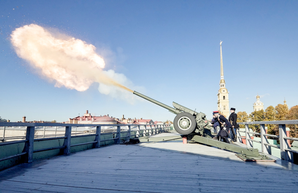 Полковник Вячеслав Поляков и есаул Илья Пивник произвели полуденный орудийный выстрел с Нарышкина бастиона во славу лейб-гвардии казачьего Его Величества полка, который с момента основания в 1775 году и на протяжении своей истории принимал участие во всех войнах, защищая Отечество.