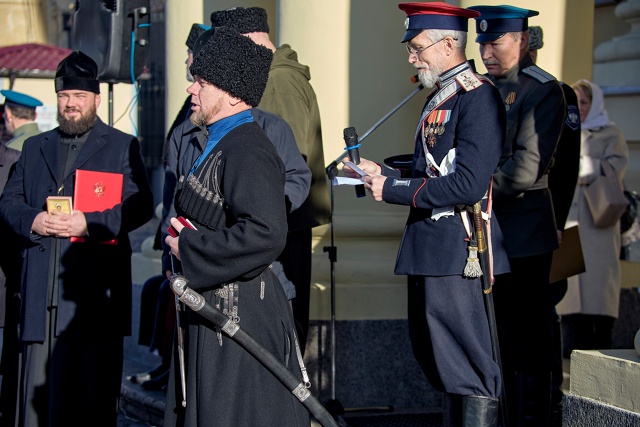 Перед собравшимися, также, выступил один из старейших атаманов Северо-Запада, Донской казак Вячеслав Анатольевич Поляков предки которого служили в Лейб-Гвардии.