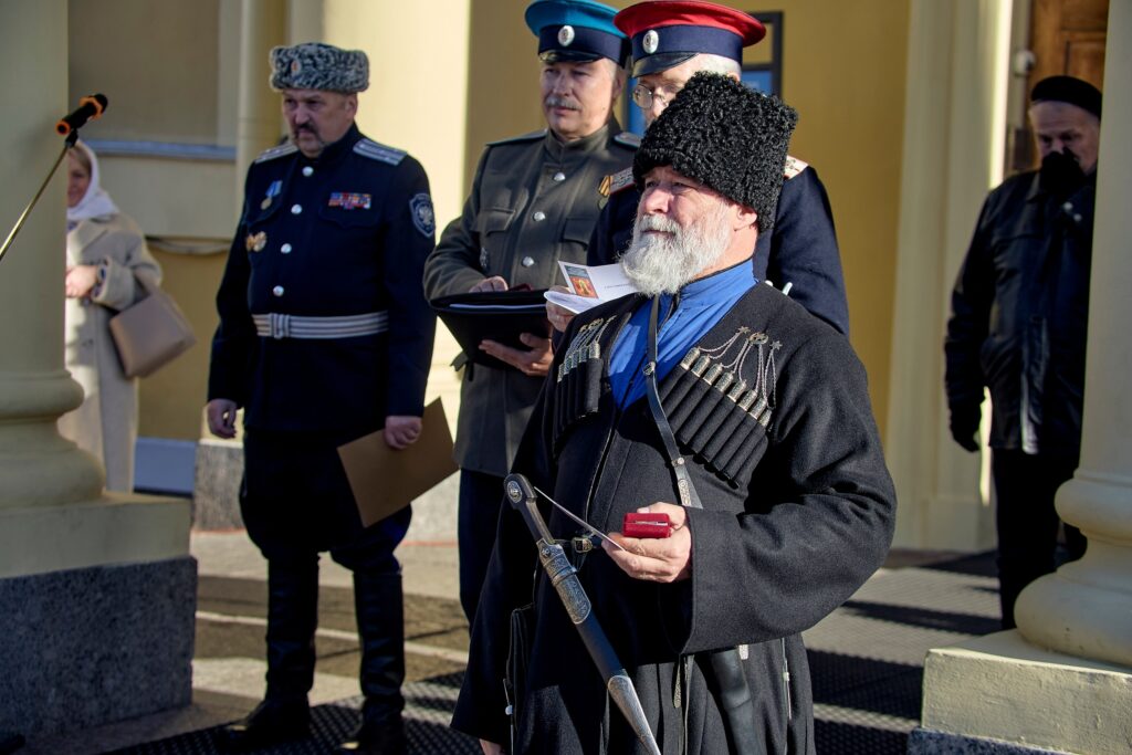 Перед собравшимися также выступил один из старейших атаманов Северо-Запада, Донской казак Вячеслав Анатольевич Поляков, предки которого служили в Лейб-Гвардии. Во время торжественного построения трое казаков СКО «СТАНИЦА ГРЕБЕНСКАЯ» были награждены Орденским знаком памяти Императора Николая II.