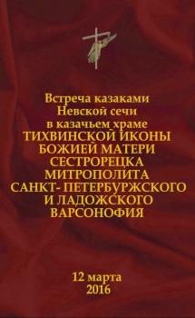Встреча казаками «Невской сечи» в казачьем храме Тихвинской иконы Божией Матери города Сестрорецка митрополита Санкт-Петербургского и Ладожского Варсонофия. 12 марта 2016
