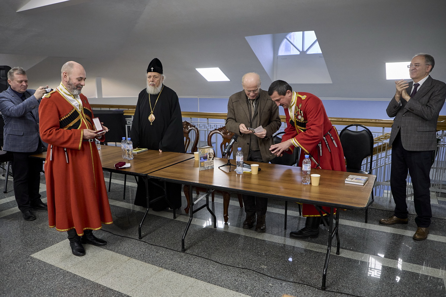 Презентацию возглавил председатель Синодального комитета по взаимодействию с казачеством, председатель Синодального отдела по взаимодействию с Вооруженными Силами и правоохранительными органами митрополит Ставропольский и Невинномысский Кирилл совместно с составителями книги – Академиком РАО, председателем Ливано-Российского дома Сухелем Фарахом и историком, писателем Владимиром Карагодиным. В работе презентации также принял участие Представитель Патриарха Антиохийского и всего Востока при Патриархе Московском и всея Руси митрополит Филиппопольский Нифон, научный руководитель Российского государственного архива социально-политической истории Андрей Сорокин и ответственный секретарь Синодального комитета по взаимодействию с казачеством, настоятель храма святителя Николая в Заяицком иерей Тимофей Чайкин, настоятель храма Тихвинской иконы Божией Матери города Сестрорецка архимандрит Гавриил (Коневиченко), а также казаки Конвоя Памяти Государя Императора Николая II во главе с вахмистром Конвоя, командиром Санкт-Петербургского Лейб-гвардии Казачьего дивизиона, есаулом Ильей Пивником, казаки Санкт-Петербургской объединенной общественной организации возрождения культурных традиций и обычаев казачества «Невская сечь» во главе с начальником штаба Юрием Серебриевым, наказной атаман Ставропольского отдела Конвоя Памяти Государя Императора Николая II, атаман Ставропольского казачьего войска СКР казачий полковник Дмитрий Стригунов, наказной атаман Годуновского отдела Конвоя Памяти Государя Императора Николая II в Подмосковье, атаман Столичной сотни Ставропольского казачьего войска СКР, войсковой старшина Владимир Подъячев с казаками.