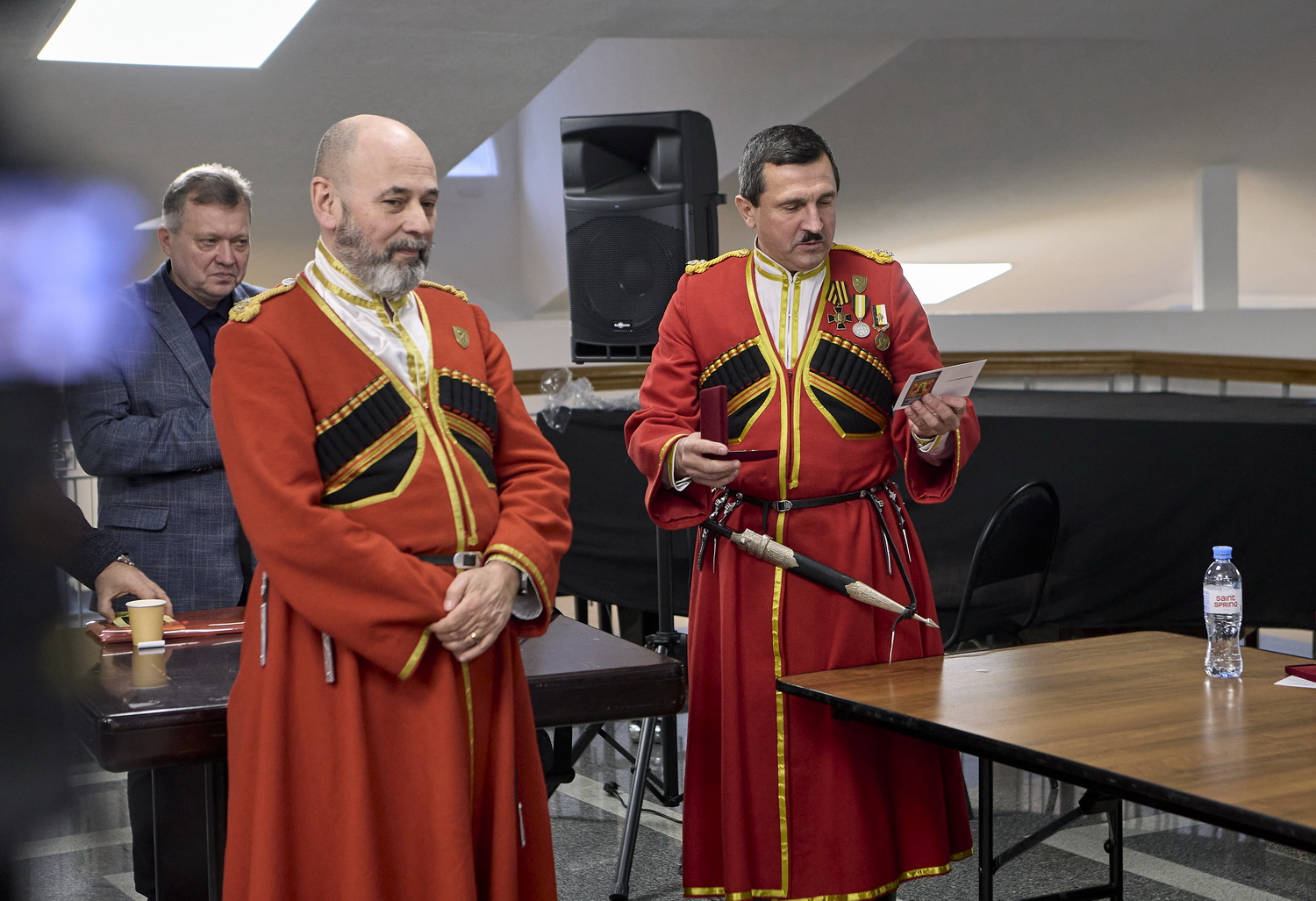 По благословению настоятеля храма Тихвинской иконы Божией Матери города Сестрорецка, духовника Конвоя Памяти Государя Императора Николая II архимандрита Гавриила (Коневиченко) наказной атаман Ставропольского отдела Конвоя Памяти Государя Императора Николая II, атаман Ставропольского казачьего войска СКР казачий полковник Дмитрий Стригунов вручил казачьи награды.
