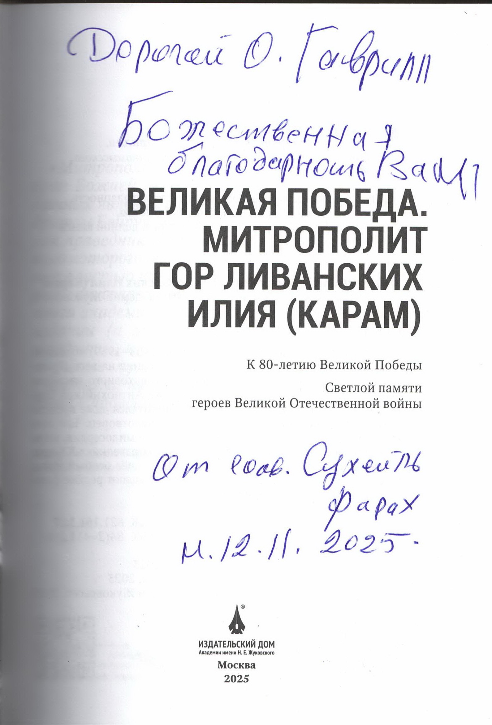 14 ноября 2025 года в Актовом зале Духовно-просветительского центра храма святителя Николая в Заяицком состоялась презентация книги «Великая Победа. Митрополит Гор Ливанских Илия (Карам)».