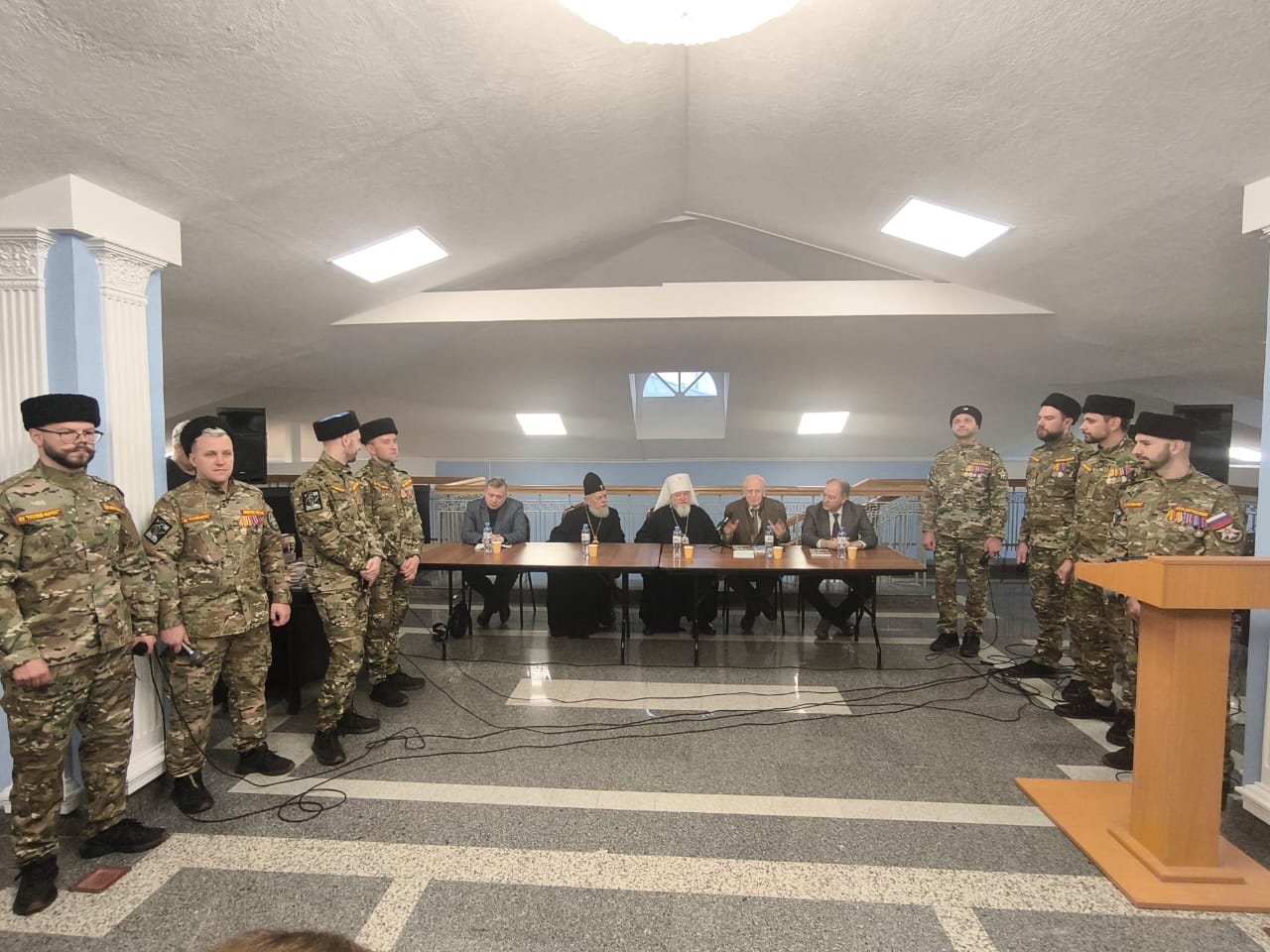Презентацию возглавил председатель Синодального комитета по взаимодействию с казачеством, председатель Синодального отдела по взаимодействию с Вооруженными Силами и правоохранительными органами митрополит Ставропольский и Невинномысский Кирилл совместно с составителями книги – Академиком РАЕН, председателем Ливано-Российского дома Сухелем Фарахом и историком, писателем Владимиром Карагодиным. В работе презентации также принял участие Представитель Патриарха Антиохийского и всего Востока при Патриархе Московском и всея Руси митрополит Филиппопольский Нифон, научный руководитель Российского государственного архива социально-политической истории Андрей Сорокин и ответственный секретарь Синодального комитета по взаимодействию с казачеством, настоятель храма святителя Николая в Заяицком иерей Тимофей Чайкин, настоятель храма Тихвинской иконы г. Сестрорецка архимандрит Гавриил (Коневиченко), а также представители казачьего Конвоя Памяти Царя Мученика Николая II и Лейб-гвардии Казачьего Его Величества полка.