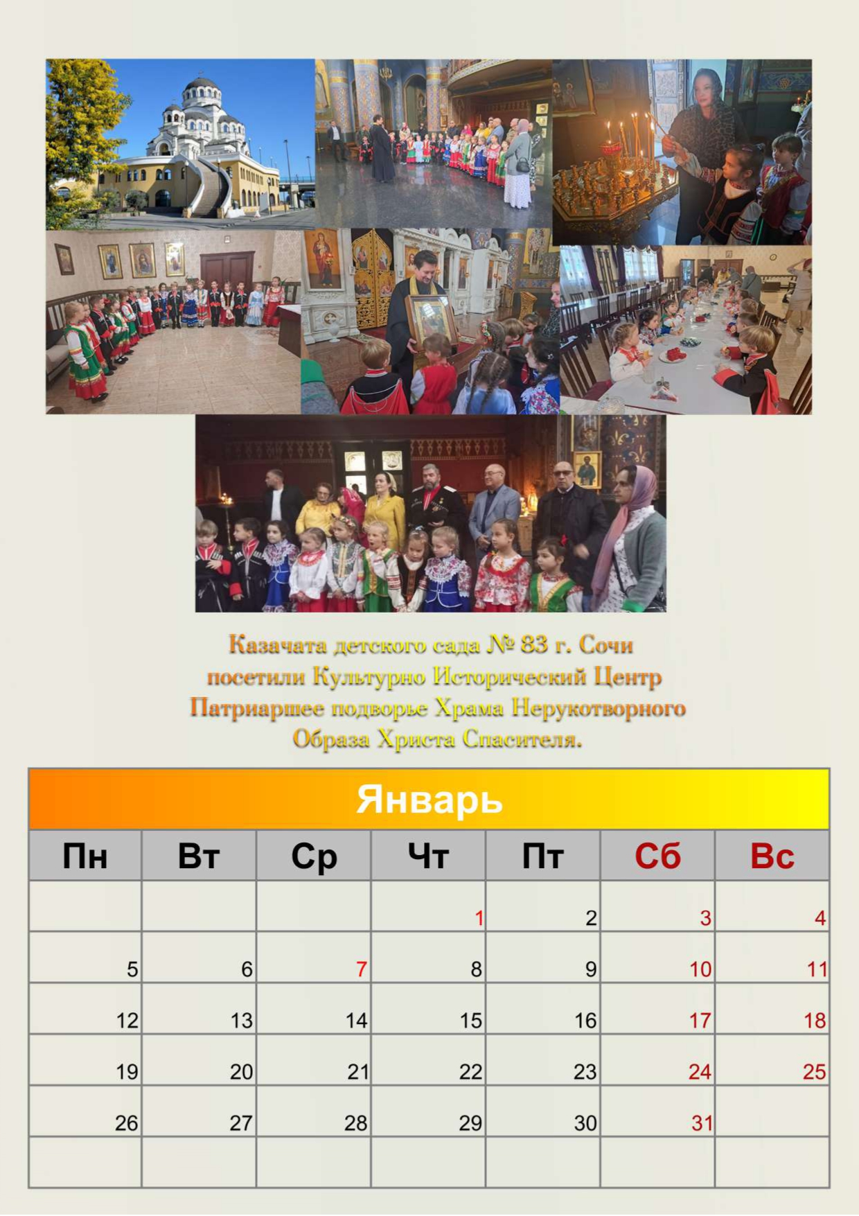 Календарь на 2026 год, изданный Сочинский отделом Конвоя Памяти Государя Императора Николая II