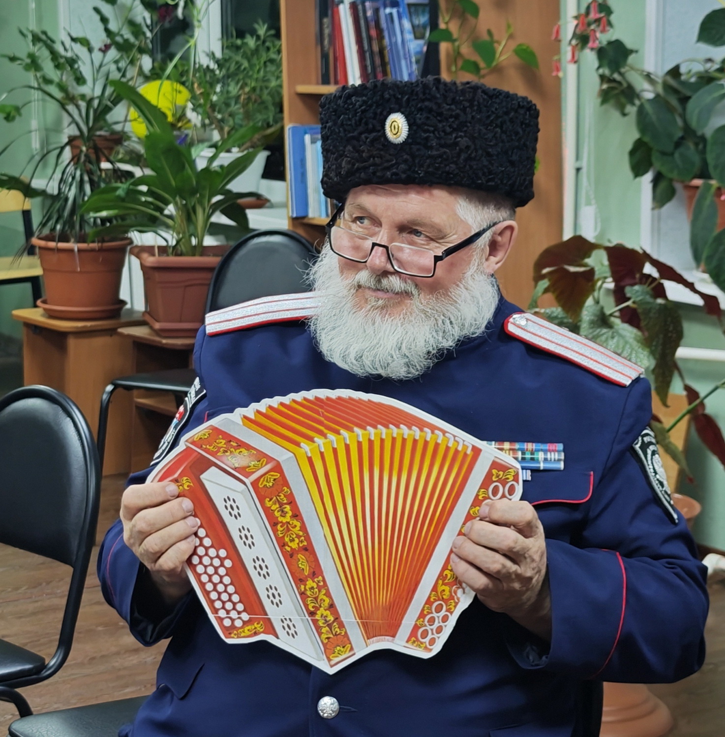 25 ноября перед собравшимися в библиотеке Камчатского сельхозтехникума выступил казак-наставник, наказной атаман Камчатского отдела Конвоя Памяти Государя Императора Николая II Савченко Фёдор Олегович. Он увлекательно рассказал об истории этого всенародно любимого инструмента, о том, что ни один праздник на Руси не обходился без его задорных звуков, а гармонист по праву считался первым парнем на селе.