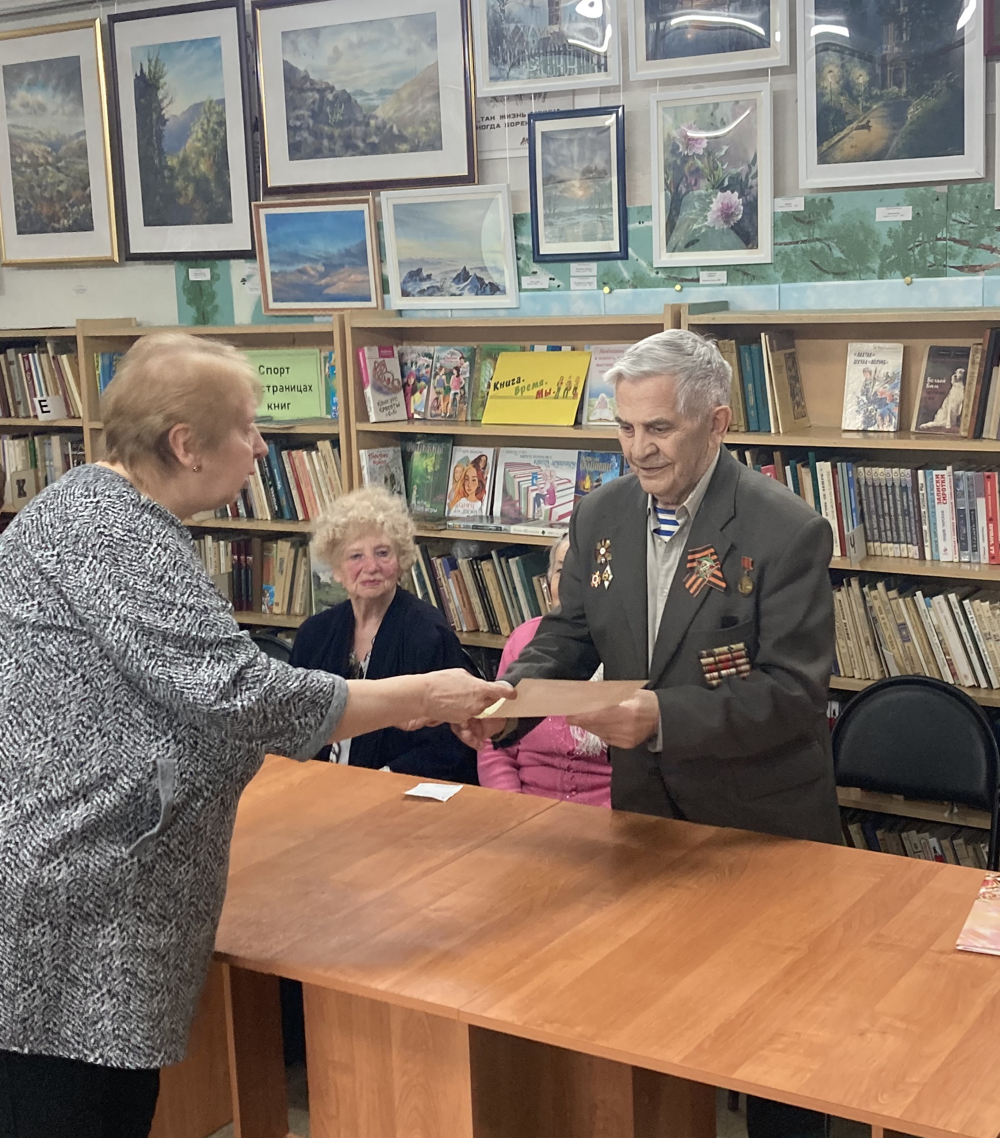 В завершение вечера директор библиотеки А.В. Клюева вручила Почетную грамоту старейшине Столичной сотни Ставропольского казачьего войска Николаю Дмитриевичу Ерковичу за многолетнюю патриотическую работу с молодежью и в честь 160-летия со дня образования библиотеки – старейшей библиотеки Московской области.