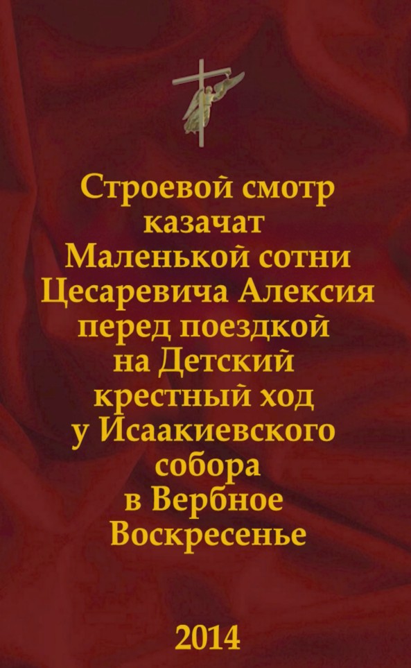 Строевой смотр казачат Маленькой сотни Цесаревича Алексия перед поездкой на Детский крестный ход у Исаакиевского собора в Вербное Воскресенье. 2014