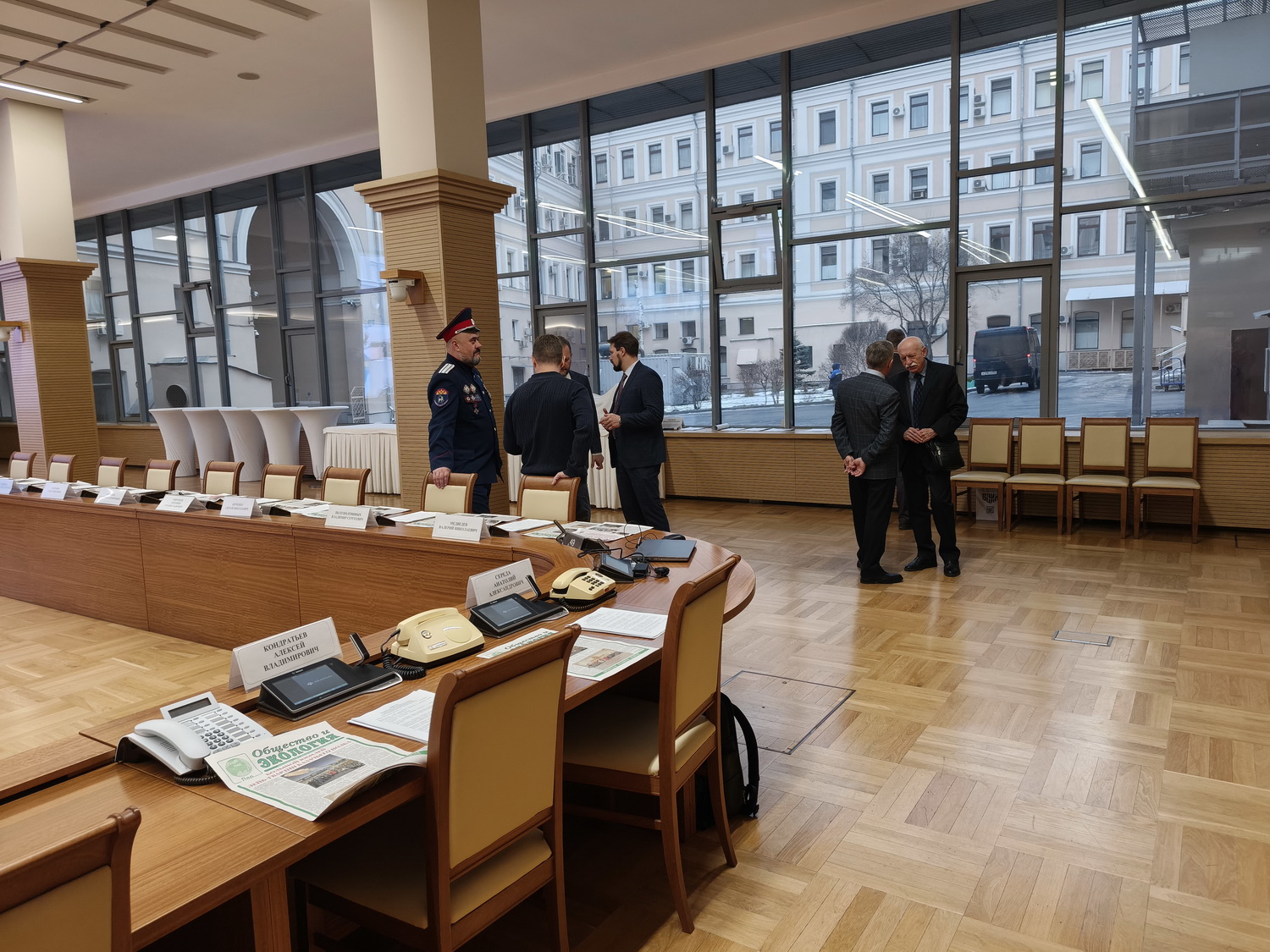 До начала работы комиссии начальник штаба «Невской сечи» Ю.Я. Серебриев раздал всем присутствующим очередной номер газеты «Общество и Экология» № 7 (268) от 30 ноября 2025 года и газету «Верейский казачий вестник».