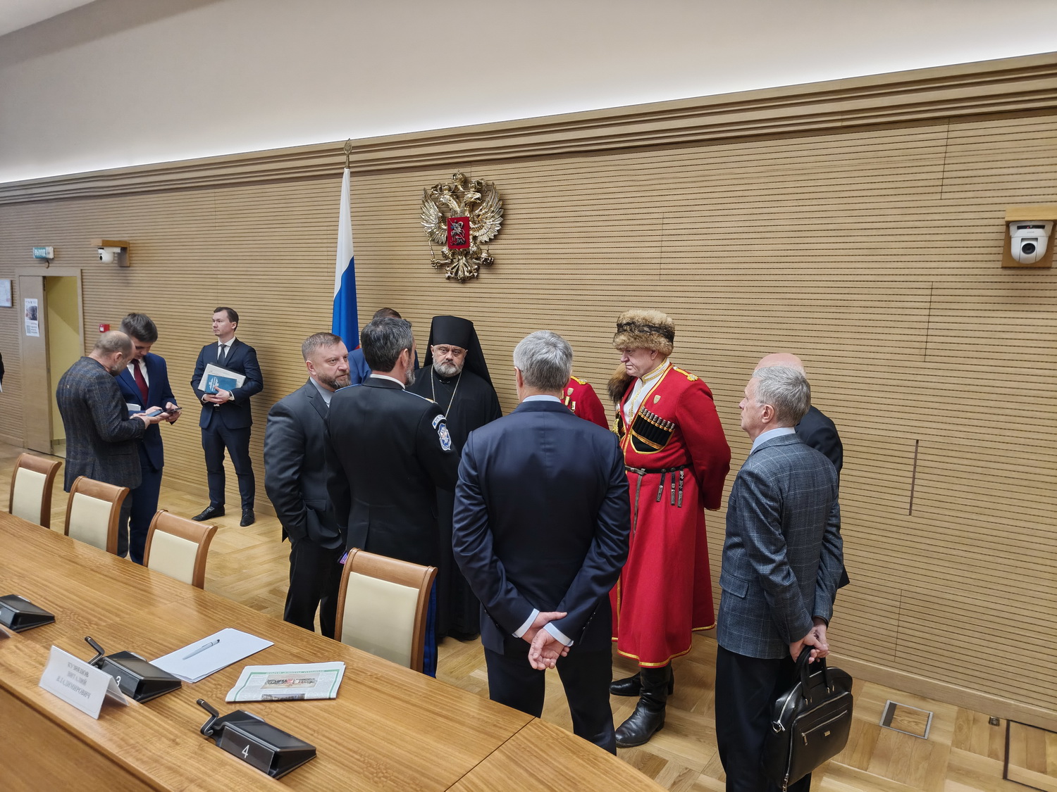 Также в качестве почетного гостя на заседание был приглашен атаман Всероссийского казачьего общества, казачий генерал Виталий Владимирович Кузнецов. Виталий Владимирович назначен на эту должность в ноябре 2023 года указом Президента Российской Федерации № 874 от 22 ноября.