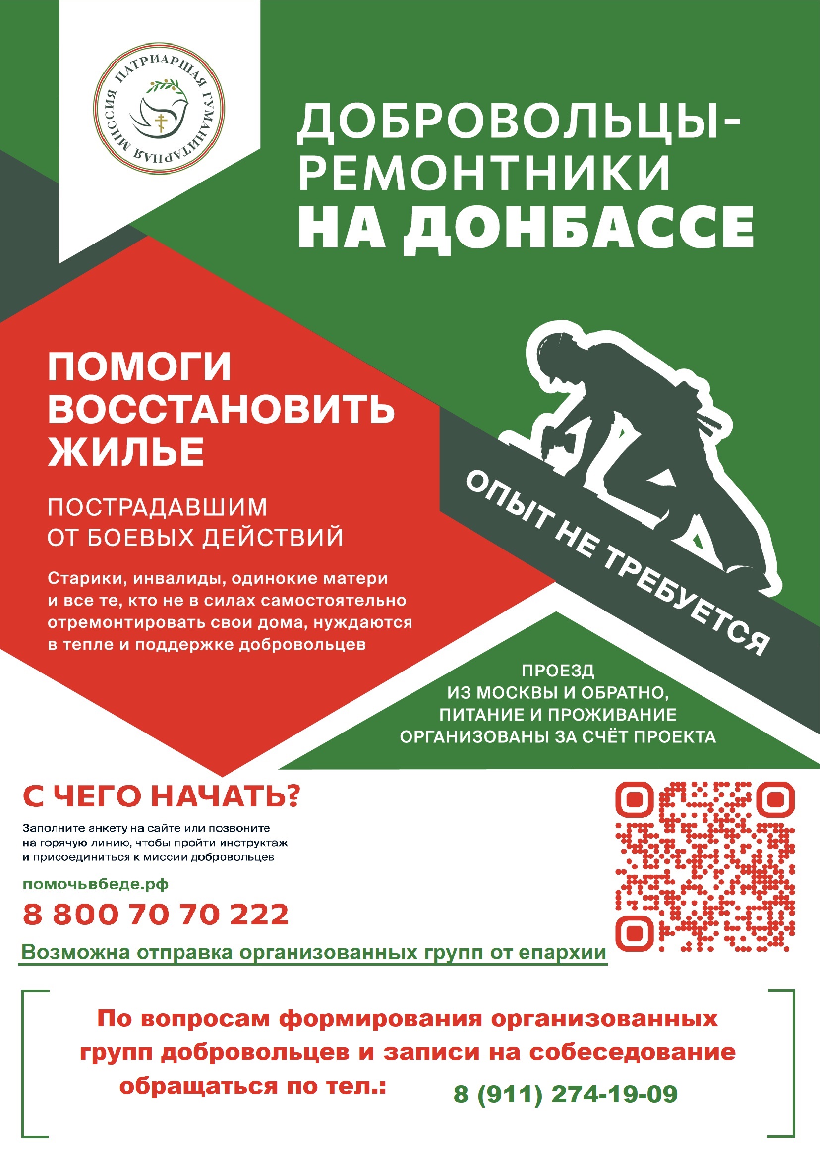 Русская Православная Церковь призывает всех, кто чувствует в себе силы и желание послужить, присоединиться к этому важнейшему делу. Вместе мы можем не только восстанавливать дома, но и врачевать душевные раны, неся свет веры и тепло человеческого участия тем, кто в этом так нуждается.