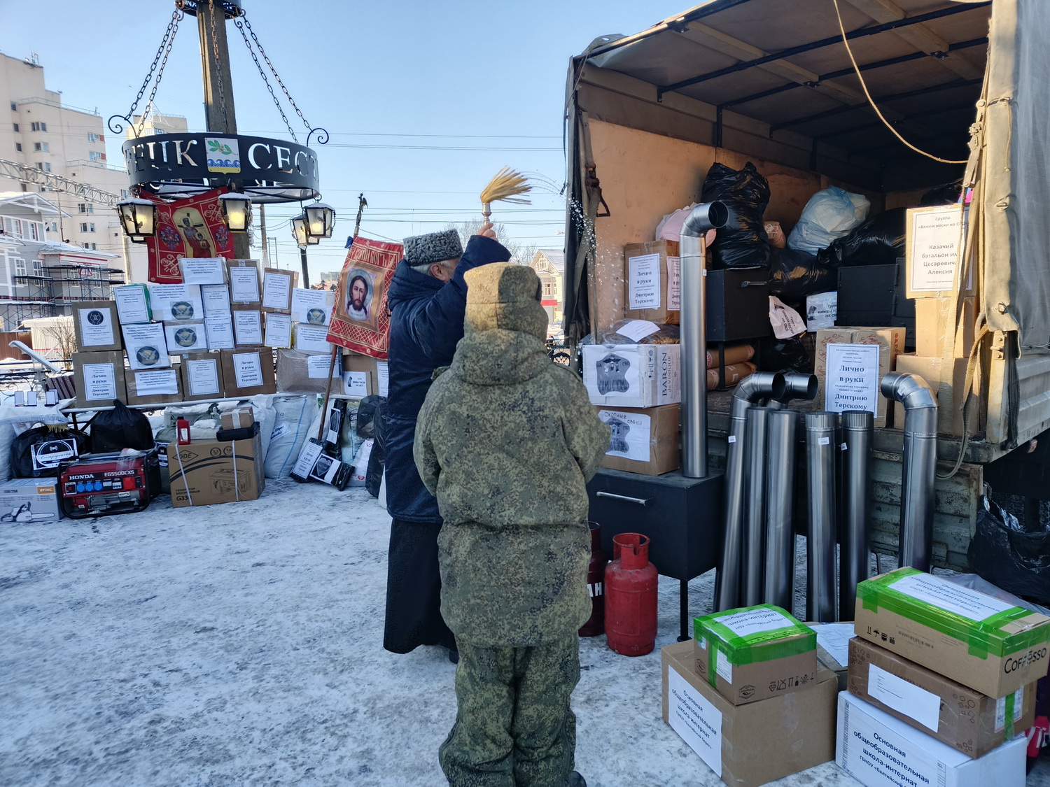 Груз отправили в Батальон Цесаревича Алексия в Херсонскую область в зону СВО и в 116-ую (стальную) бригаду особого назначения, 902-ой полк, казачий батальон Таврида наказному атаману Боевого отдела Конвоя Памяти Государя Императора Николая II в зоне СВО Дмитрию Геннадьевичу Терскому.