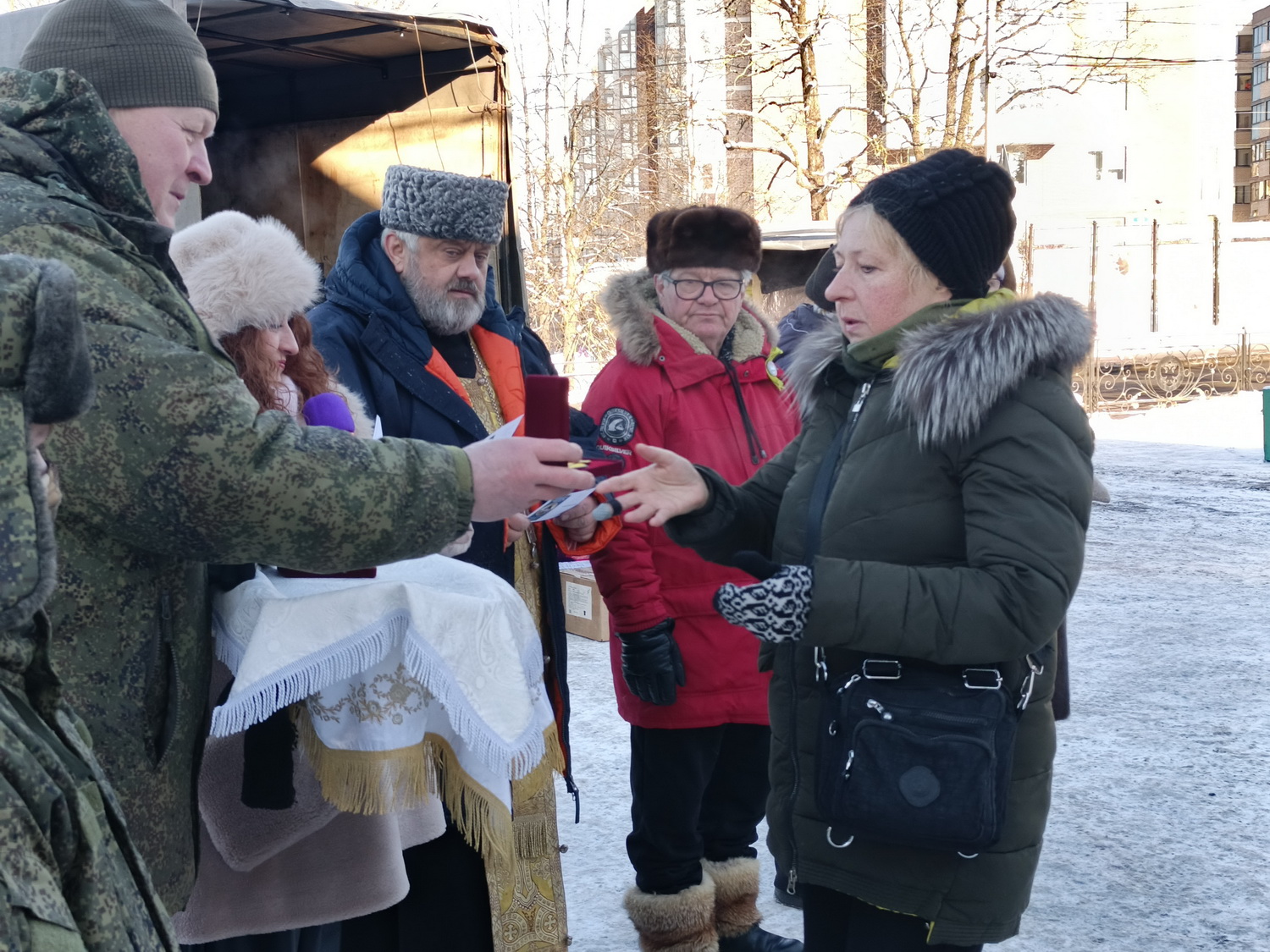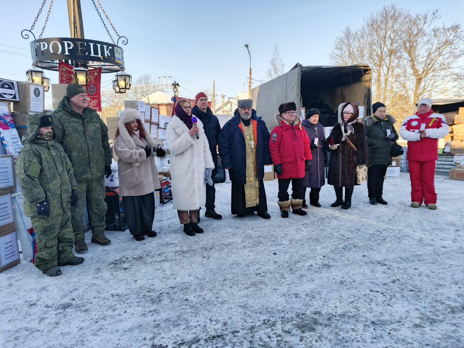 Настоятель храма Тихвинской иконы Божией Матери города Сестрорецка, духовник Батальона Цесаревича Алексия архимандрит Гавриил (Коневиченко) благословил участников конвоя, подчеркнул важность духовной поддержки и единства народа в это непростое время, отметив значение каждого вклада, большого или малого, в общее дело помощи фронту.